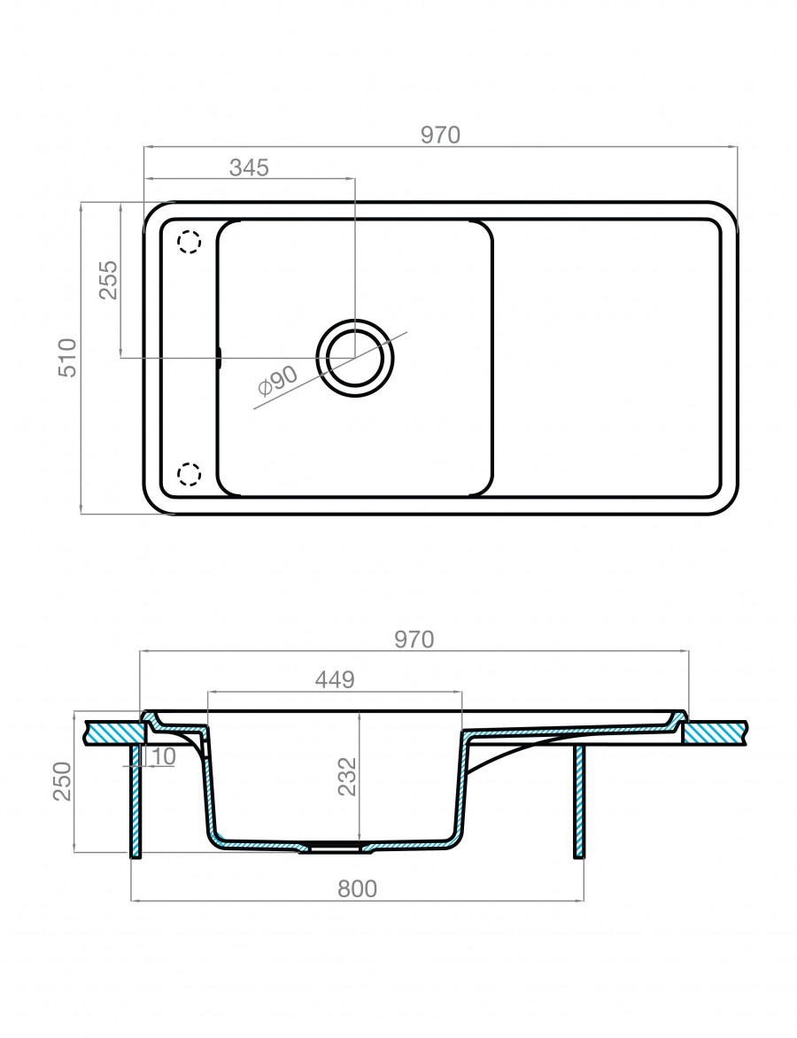 Мойка для кухни Беллис 97 970x510x250 мм, прямоуг., терракот