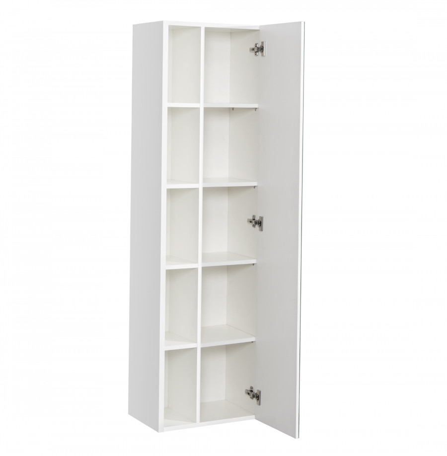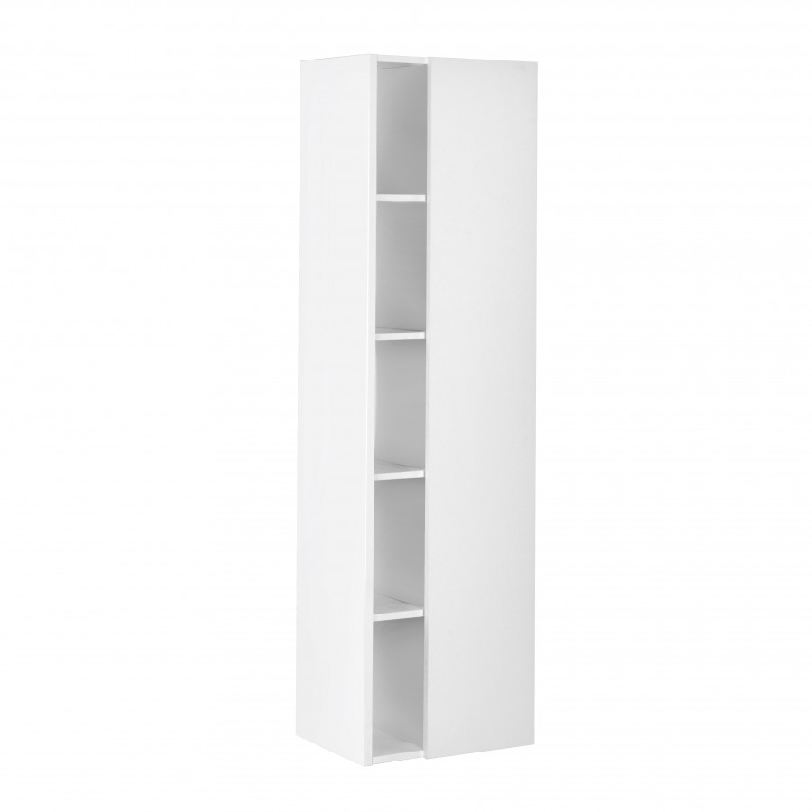 Шкаф-колонна прямоугольной формы из влагостойкой ЛДСП, подвесная, универсальная, с одной дверцей с петлями доводчиками.