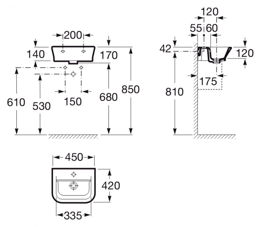 GAP Мебельная раковина 450 мм., белая, ROCA