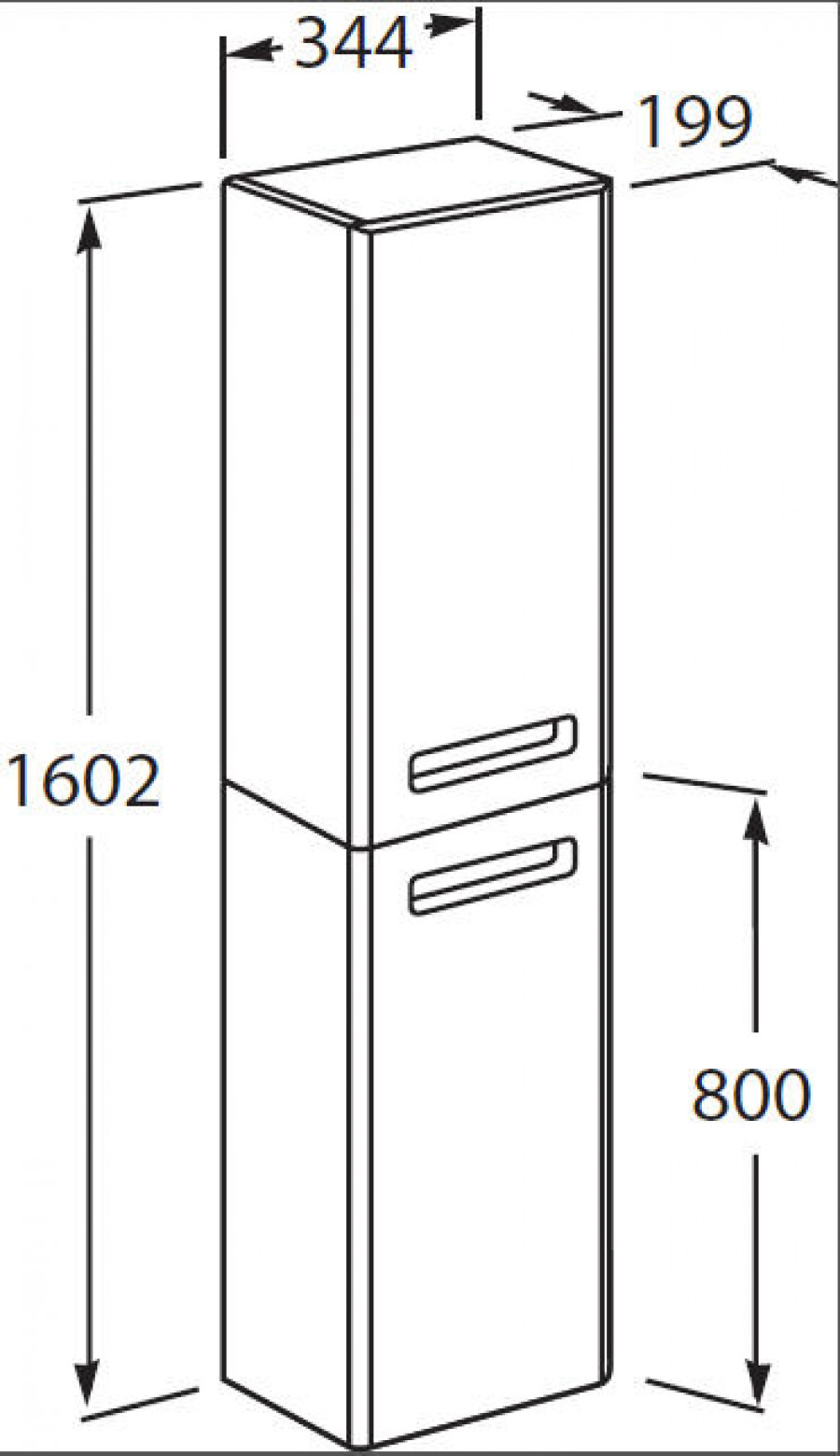 Шкаф-колонна прямоугольной формы из влагостойкой ЛДСП, подвесная, левосторонняя, с двумя дверцами с петлями доводчиками, фурнитура хром.