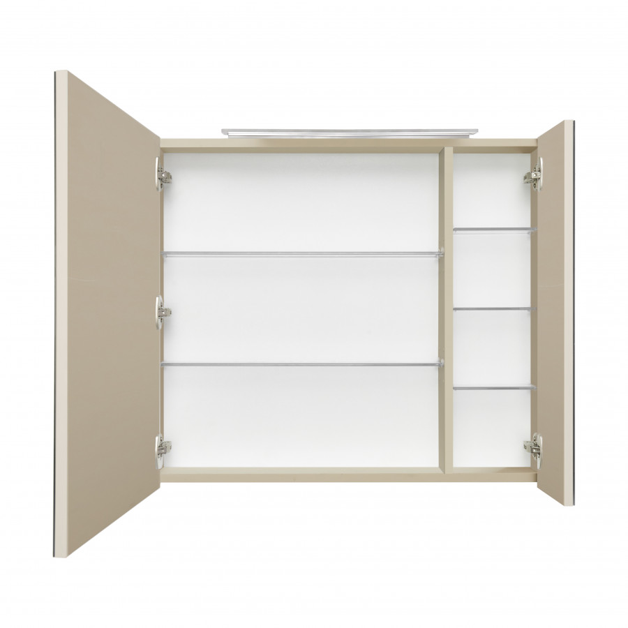 Зеркальный шкаф OLETA оснащен светильником от европейского бренда Ebir с возможностью регулировки положения, IP 44, 5 700 K. Теплота света у светильника 5 700 K – это яркий свет, идеальный для нанесения макияжа и бритья. Положение светильника можно регулировать: наклонить слегка вниз или направить свет повыше. За зеркальными фасадами расположены регулируемые по высоте полочки из просветленного стекла. Фасады оснащены петлями Hettich с плавным закрыванием. Внимание: началась замена артикулов с "7" на международный формат "A".