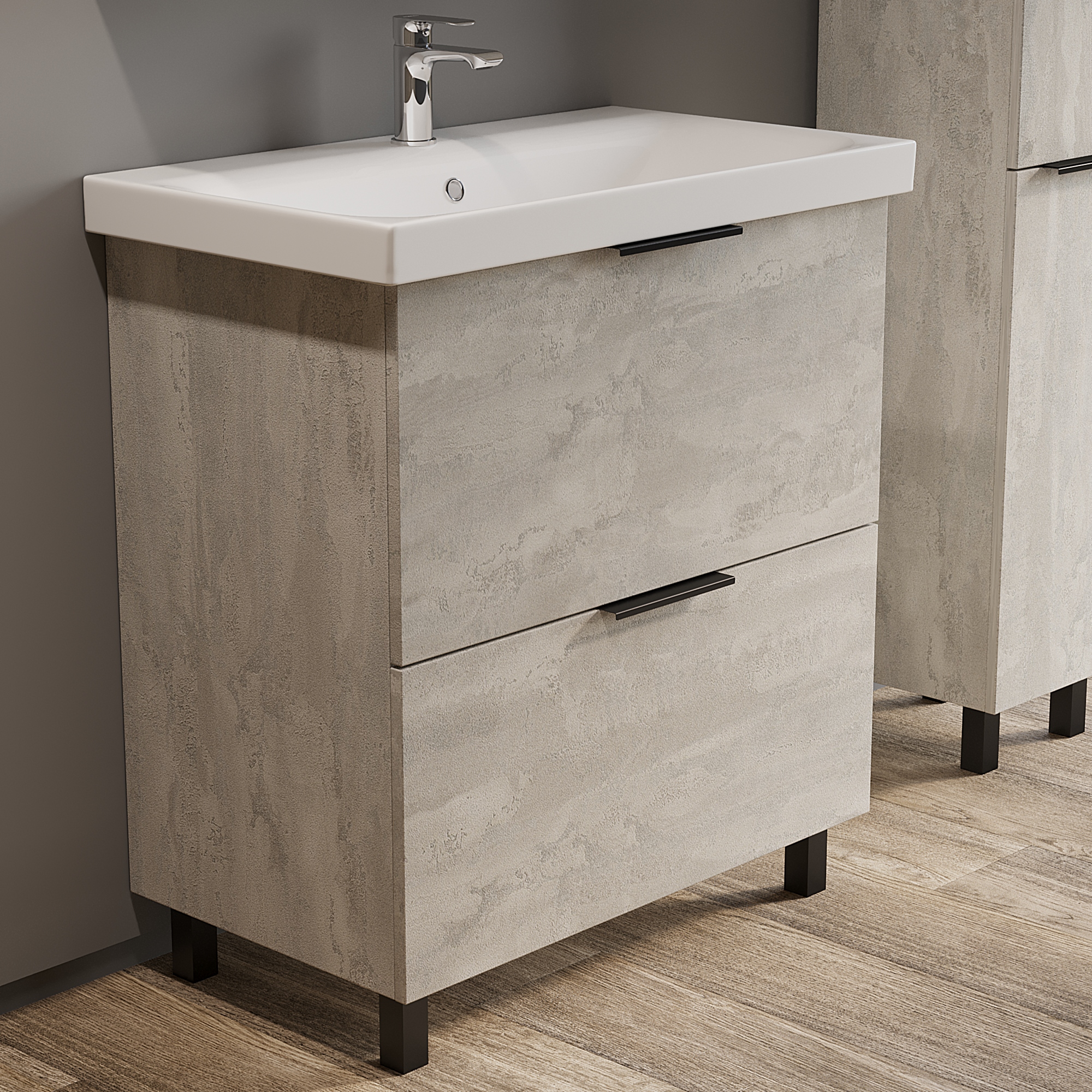 Пенал БЕРЛИН 30, правый/левый, цемент, VIANT. Комплектация: корпус, полки ЛДСП, 2 ножки черные металл, 2 ножки черный пластик.