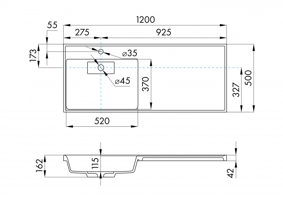 Раковина ЛОНДРИ 120, левая, графит