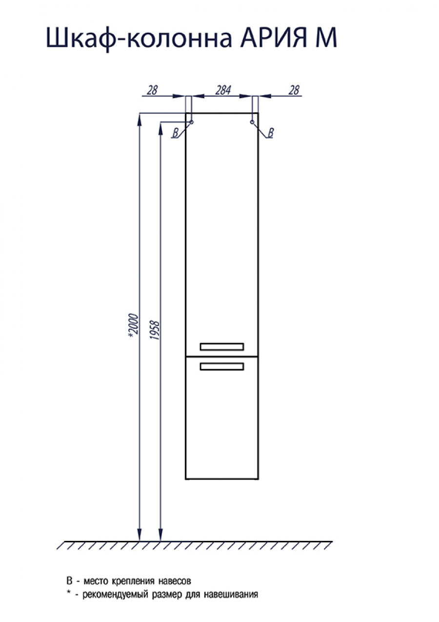 Шкаф-колонна АРИЯ М 34, подвесная, белая