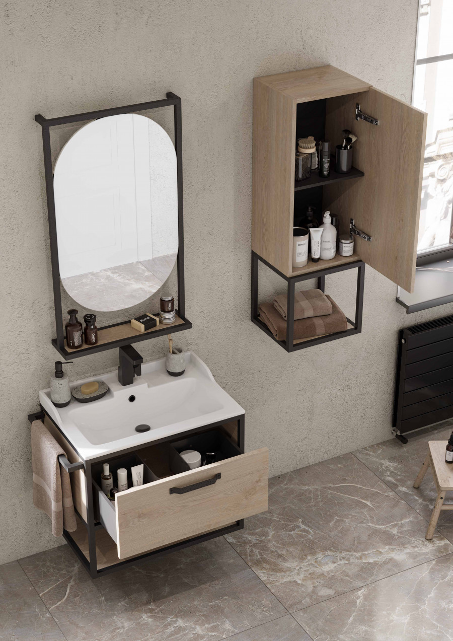 Шкафчик из коллекции Лофт Фабрик - идеальный вариант для организации дополнительного хранения. Внутри шкафчика, выполненного из влагостойкой ламинированной плиты в цвете Дуб Эндгрейн, находится вместительное отделение, разделенное регулируемой по высоте полкой. Дверца открывается за оригинальную черную металлическую ручку, а петли с доводчиком обеспечивают ее плавное закрывание. Шкафчик может быть дополнен открытой навесной полкой в форме куба из коллекции Лофт Фабрик. При желании из двух шкафчиков, расположенных друг на другом, можно получить вместительную шкаф-колонну.