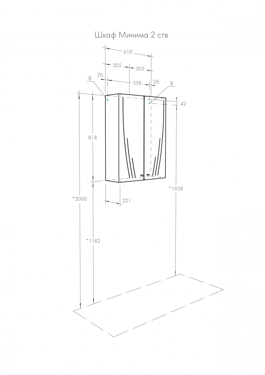 Шкаф навесной- 1шт., Регулируемые навесы - 2, фасад - 2 (петли со встроенным доводом), ручка - 2, нерегулируная полка - 2