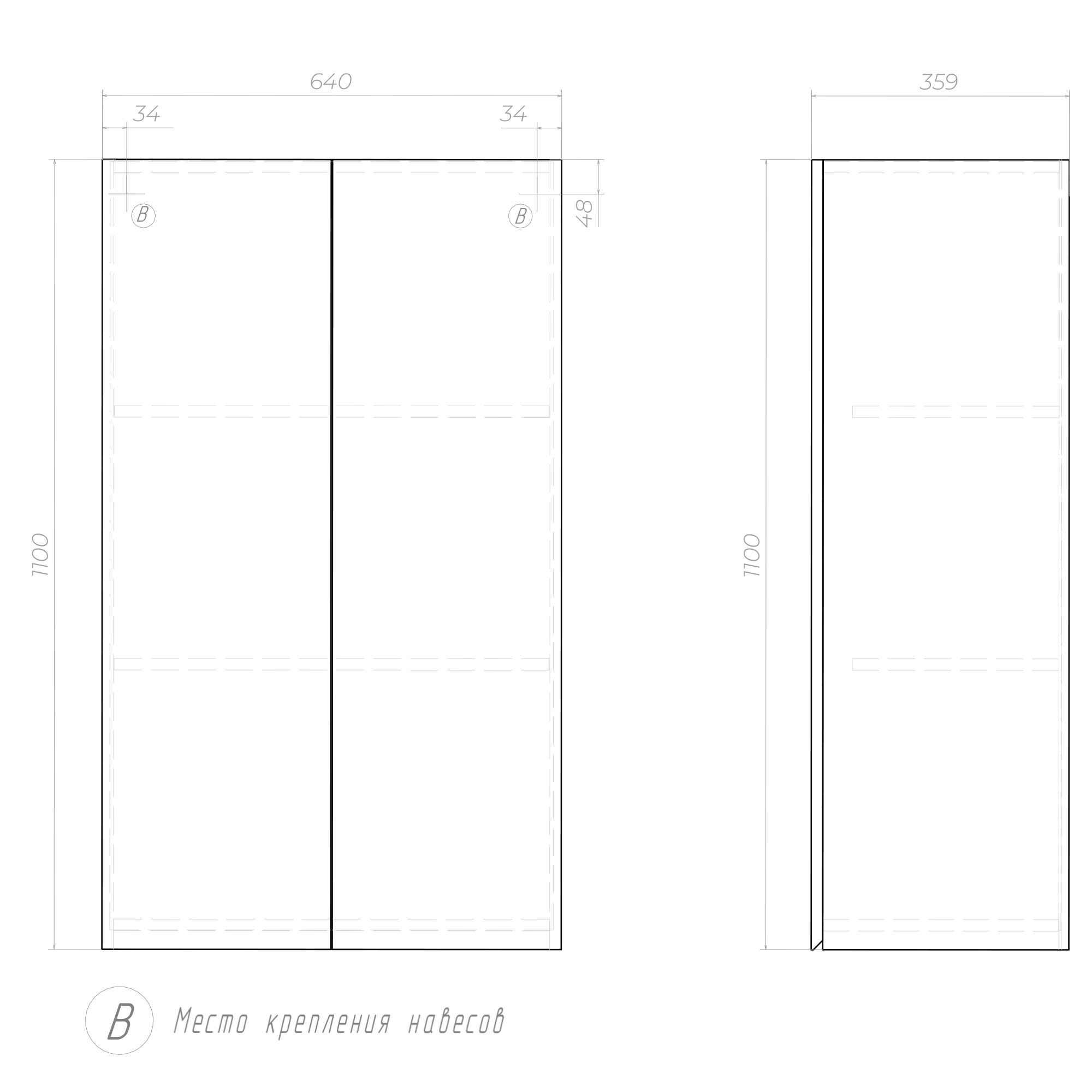 корпус шкафа, 2 дверцы, 2 полки ЛДСП, интегрированная ручка, 2 навеса