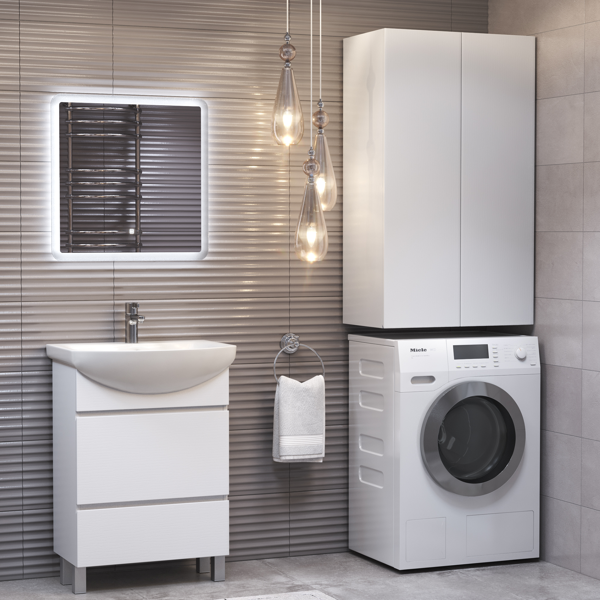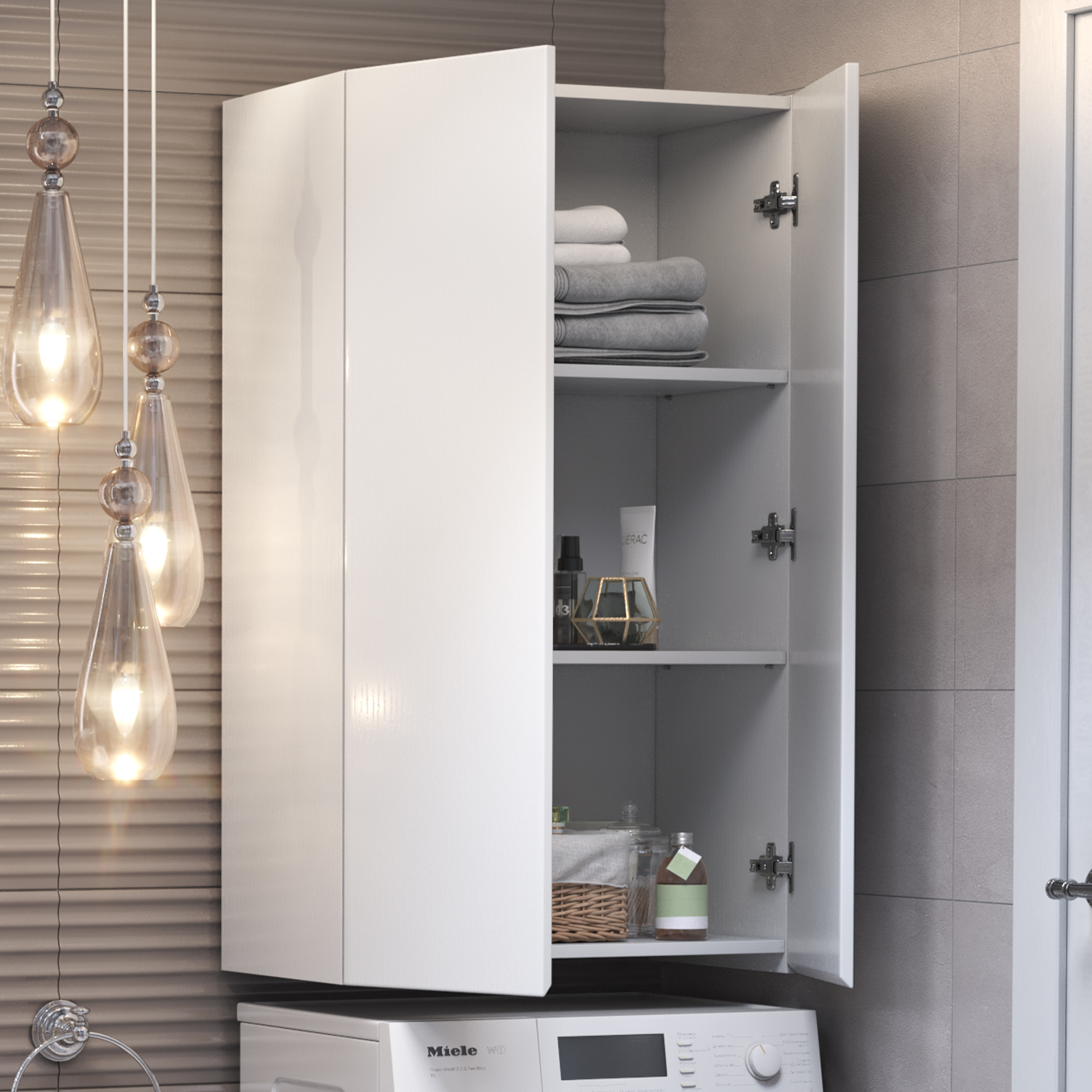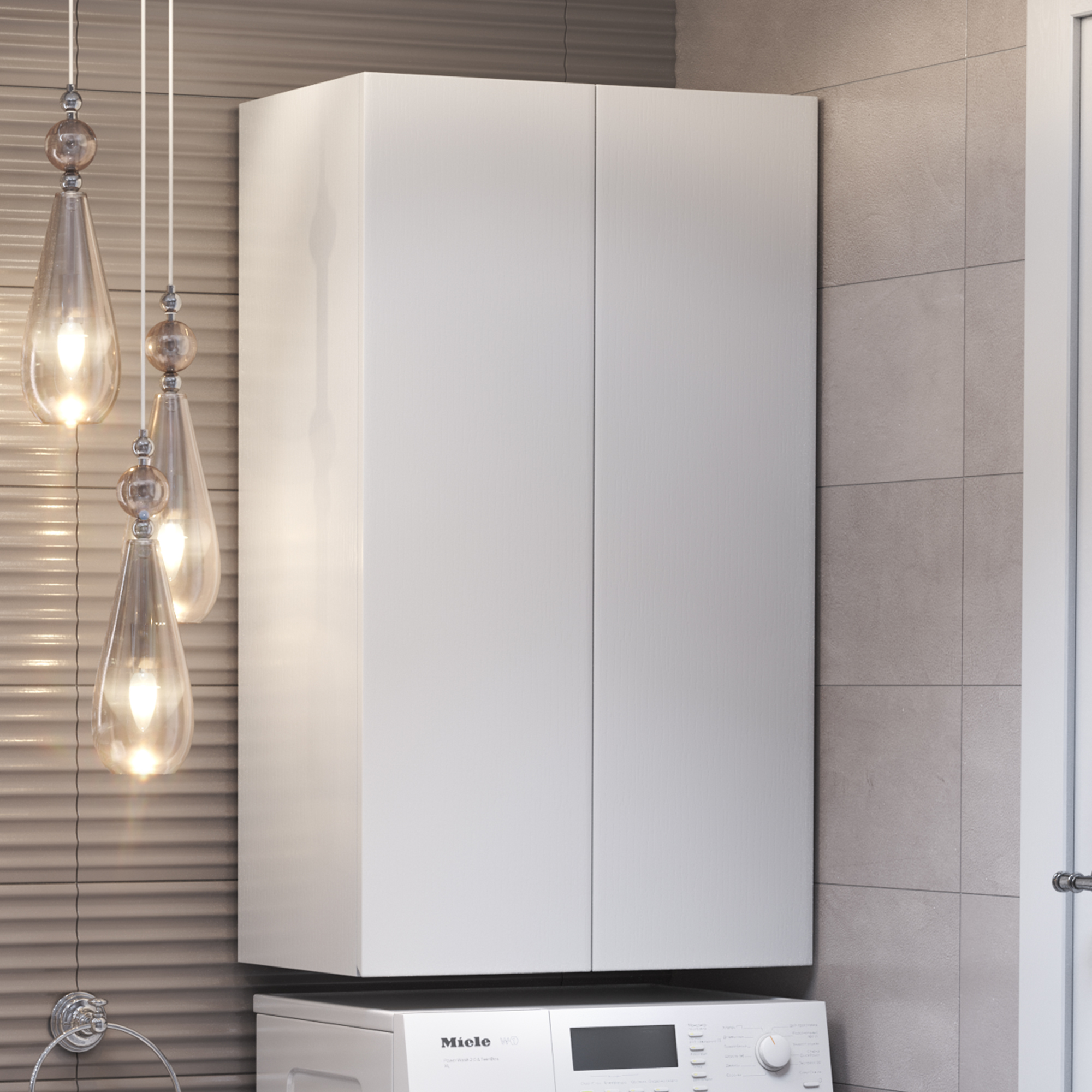 Шкафы Wing – идеальное решение, позволяющее сэкономить пространство ванной комнаты за счет размещения над стиральной машиной. Петли с доводчиком. Функциональная глубина полок 320мм. Декор материала "структура дерева".