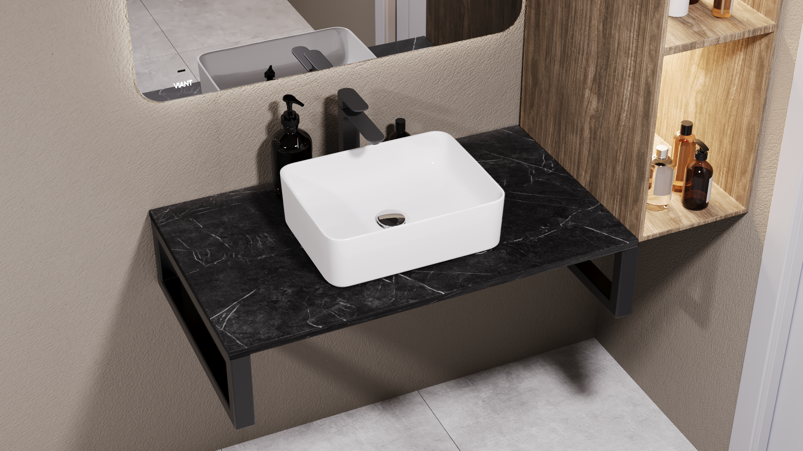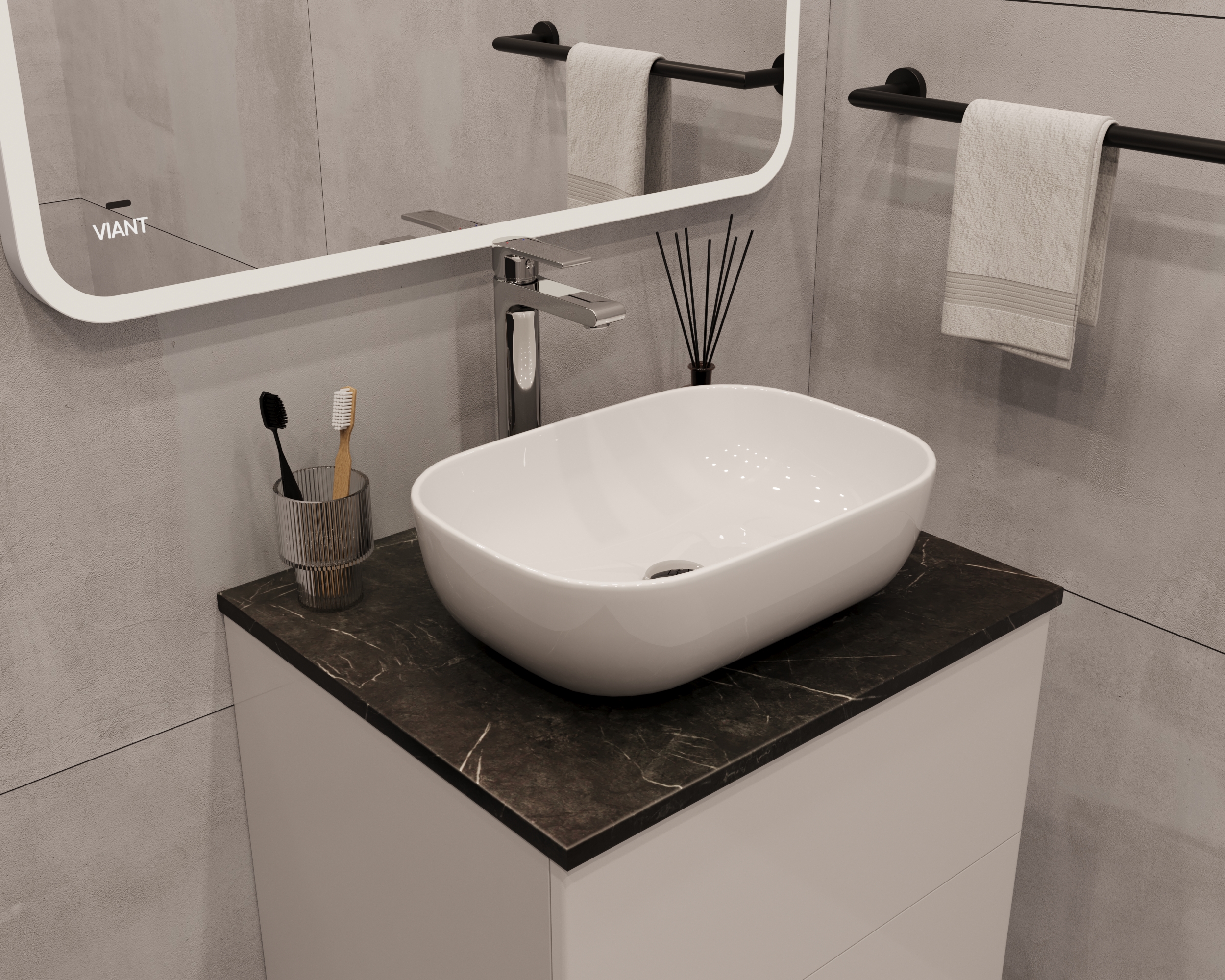 Столешница VIANT Neo. Цвет: черный мрамор, размер: 600х460х20 мм. Артикул: VNEO60MRCH-STMDF. Монтаж: на тумбу/ на кронштейн.