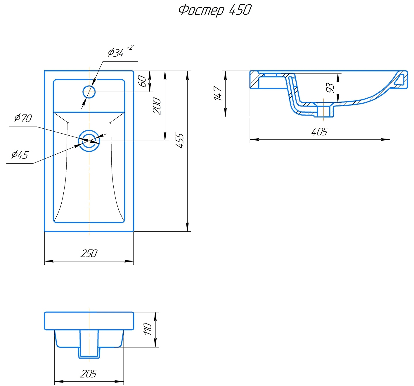 Раковина KIROVIT Фостер-450 мебельная, цвет белый. Артикул: Вн Крв60. Штрихкод (артикул производителя): 4640021065907. Комплектация: умывальник, хромированное кольцо для переливного отверстия