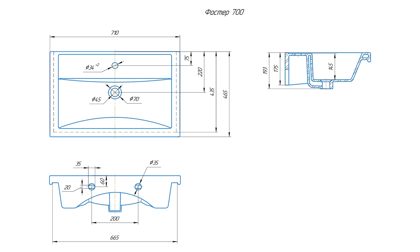 Раковина KIROVIT Фостер 700 мебельная, цвет белый. Артикул: Вн Крв10. Штрихкод (артикул производителя): 4620008197746. Комплектация: умывальник, хромированное кольцо для переливного отверстия