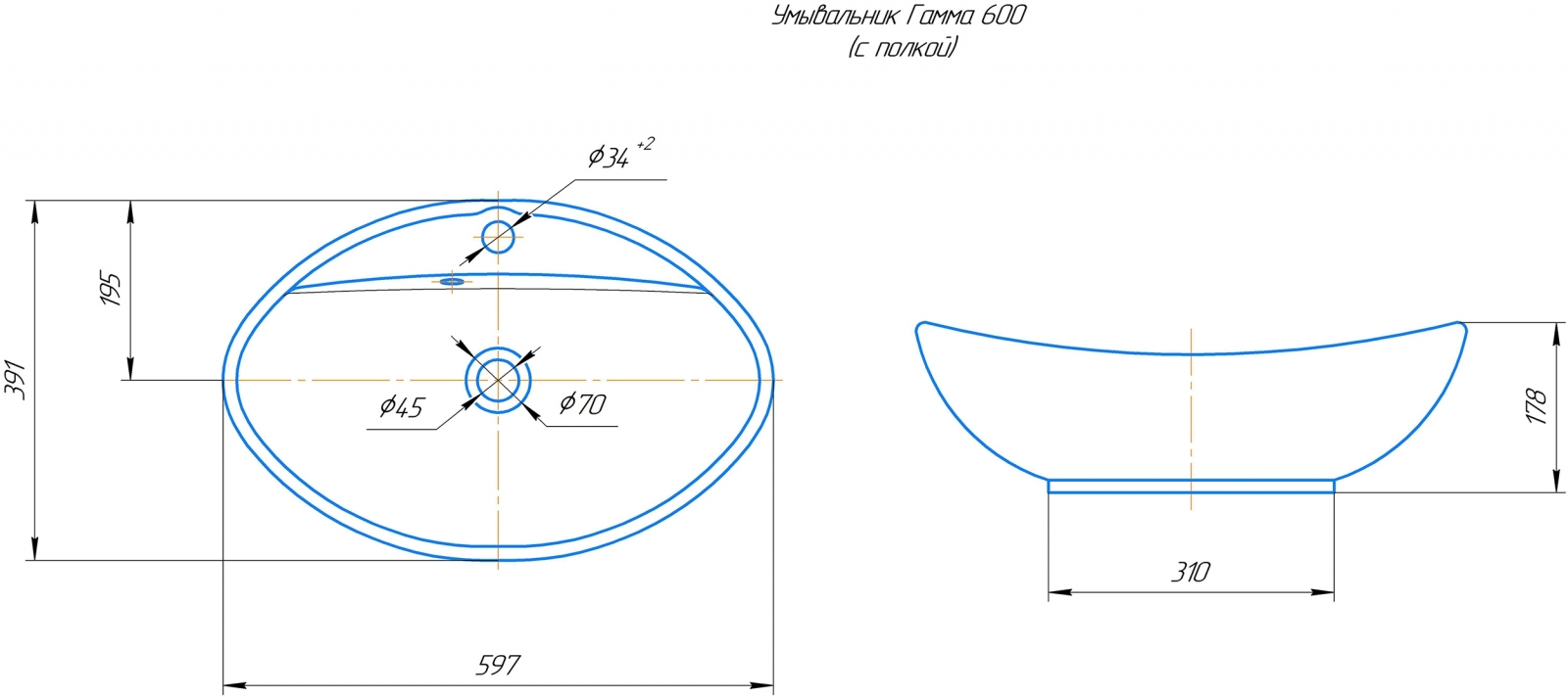 Раковина KIROVIT Гамма 600 мебельная, цвет белый. Артикул: Вн Крв68. Штрихкод (артикул производителя): 4630055550494. Комплектация: умывальник, хромированное кольцо для переливного отверстия