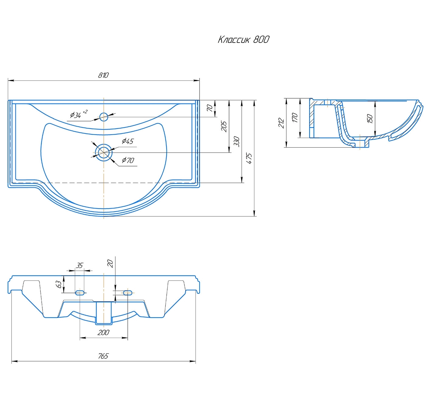 Раковина KIROVIT Классик 800 мебельная, цвет белый. Артикул: Вн Крв07. Штрихкод (артикул производителя): 4620008198941. Комплектация: умывальник, хромированное кольцо для переливного отверстия