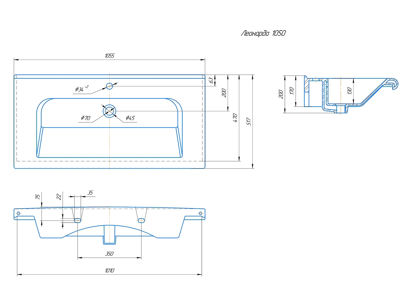 Раковина KIROVIT Леонардо 1050 мебельная, цвет белый. Артикул: Вн КтУЛ105. Штрихкод (артикул производителя): 4630055550425. Комплектация: умывальник, хромированное кольцо для переливного отверстия