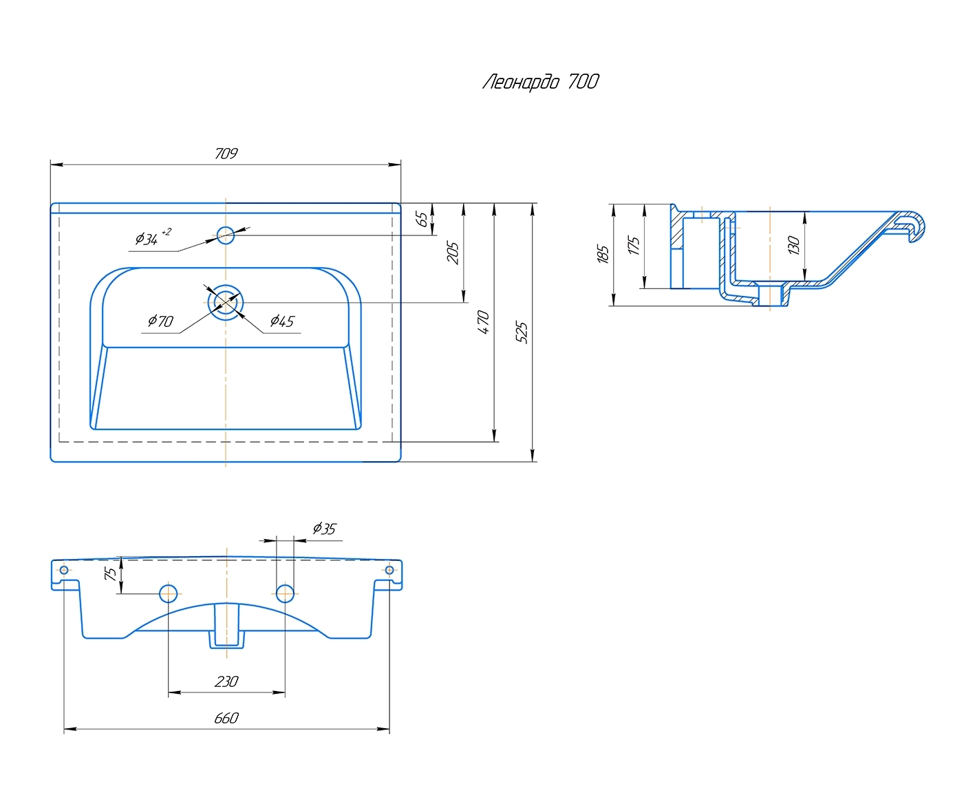 Раковина KIROVIT Леонардо 700 мебельная, цвет белый. Артикул: Вн КрУЛ70 . Штрихкод (артикул производителя): 4630055556205. Комплектация: умывальник, хромированное кольцо для переливного отверстия