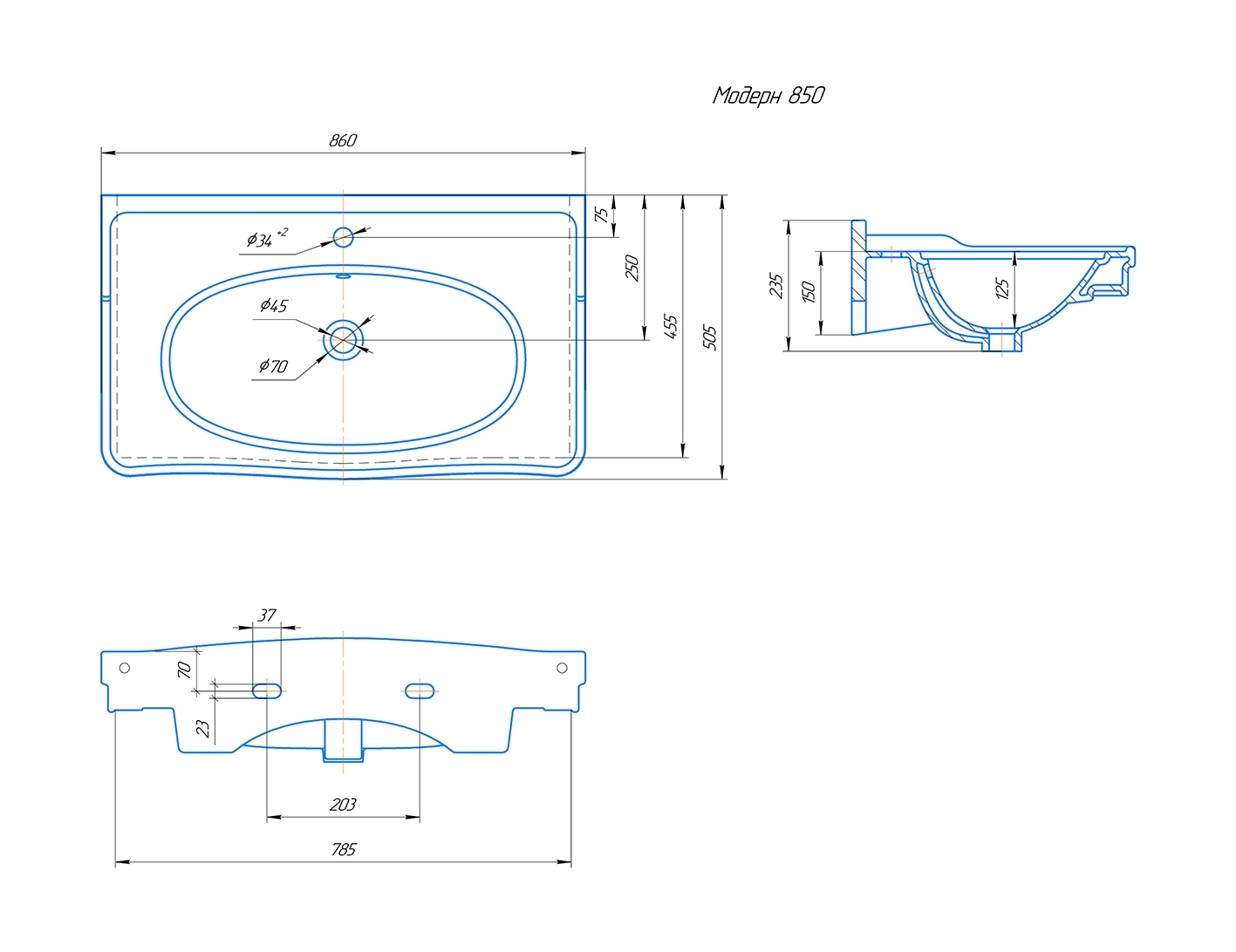 Раковина KIROVIT Модерн 850 мебельная, цвет белый. Артикул: Вн Крв37. Штрихкод (артикул производителя): 4640021065891. Комплектация: умывальник, хромированное кольцо для переливного отверстия