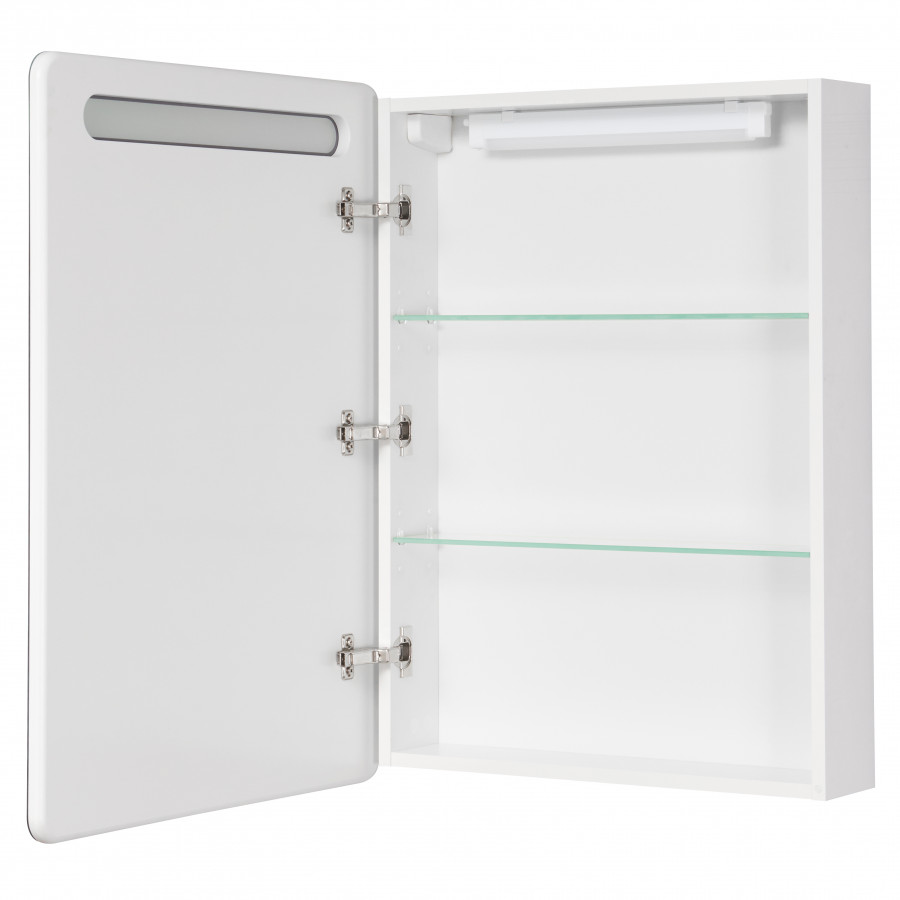Зеркальный шкаф Америна 60 от AQUATON со встроенной светодиодной подсветкой сочетает в себе лаконичную эстетику минимализма с исключительной практичностью. Модель в современном стиле выпускается с левой или правой ориентацией. Корпус из влагостойкой ЛДСП покрыт белоснежной глянцевой краской ультрафиолетового отверждения, которая обеспечивает защиту от влаги и долгий срок службы. Глубина изделия - всего 14 см, что позволяет использовать его в качестве альтернативы привычному зеркалу. Модель комплектуется LED-светильником, расположенным на задней стенке шкафа. Внутри находятся две стеклянные полки для хранения. Петли с доводчиком позволяют открывать дверцу плавно и практически бесшумно.