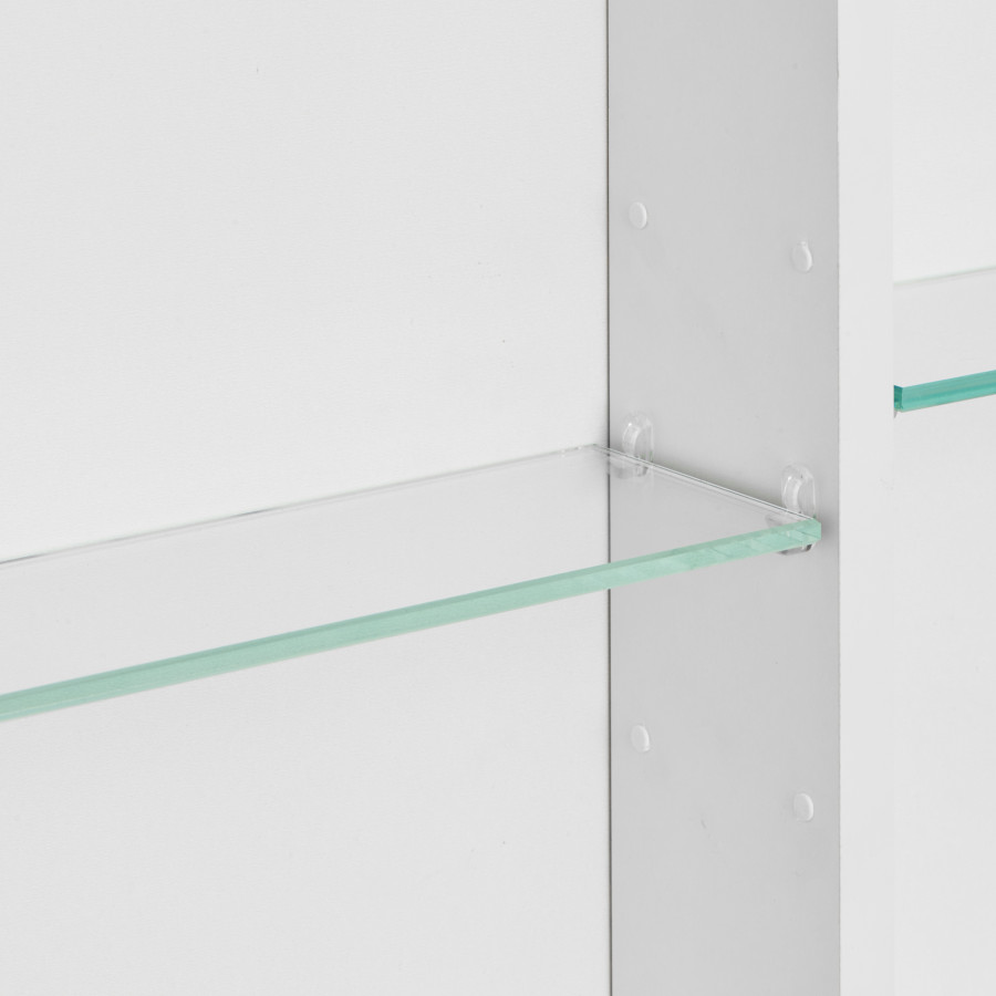 Внутри зеркального шкафа Асти расположены стеклянные полочки в ассиметричной конфигурации, позволяющей разместить флаконы с косметическими средствами разной высоты. Специальные надежные крепления предотвращают полки от случайного опрокидывания.