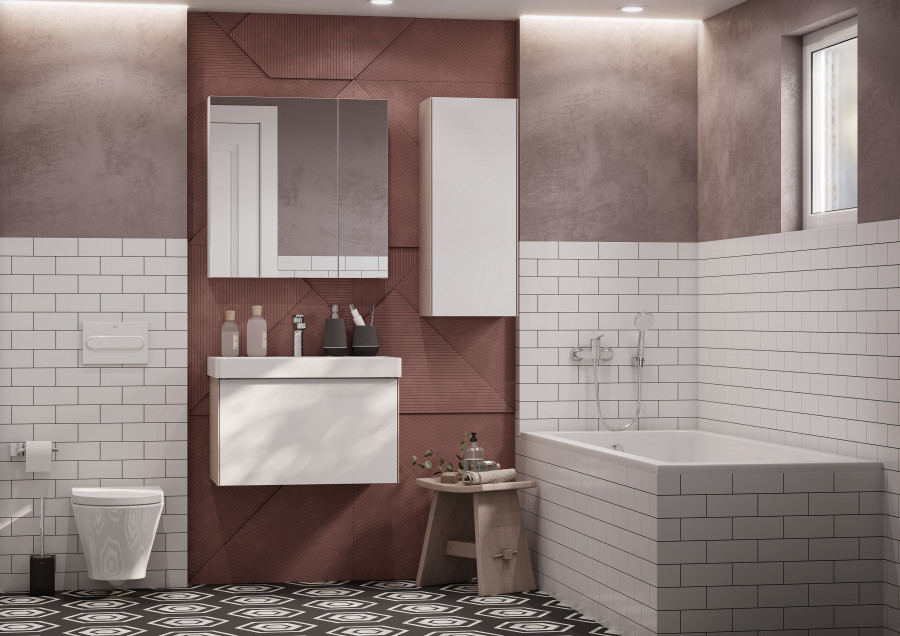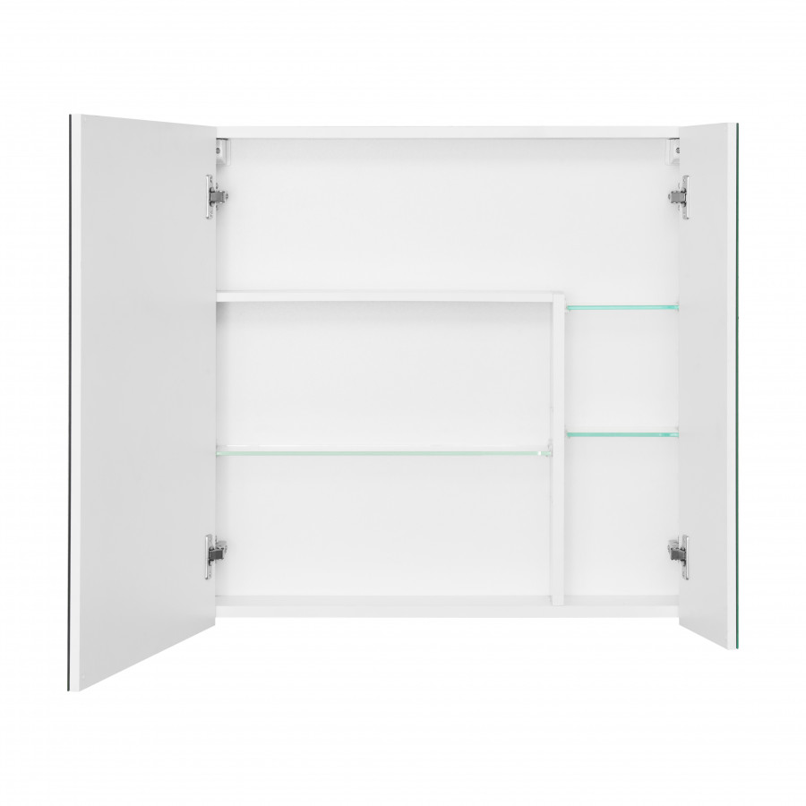 Шкаф- 1 шт., Зеркальный фасад створка - 2 шт., полка вкладная стеклянная - 3 шт., навес - 2 шт., петли с интегрированной системой плавного закрывания - 5 шт.