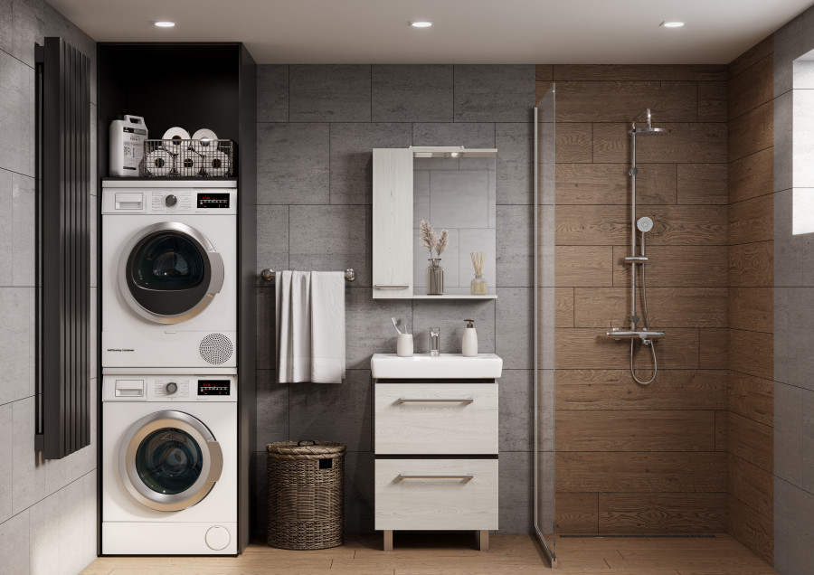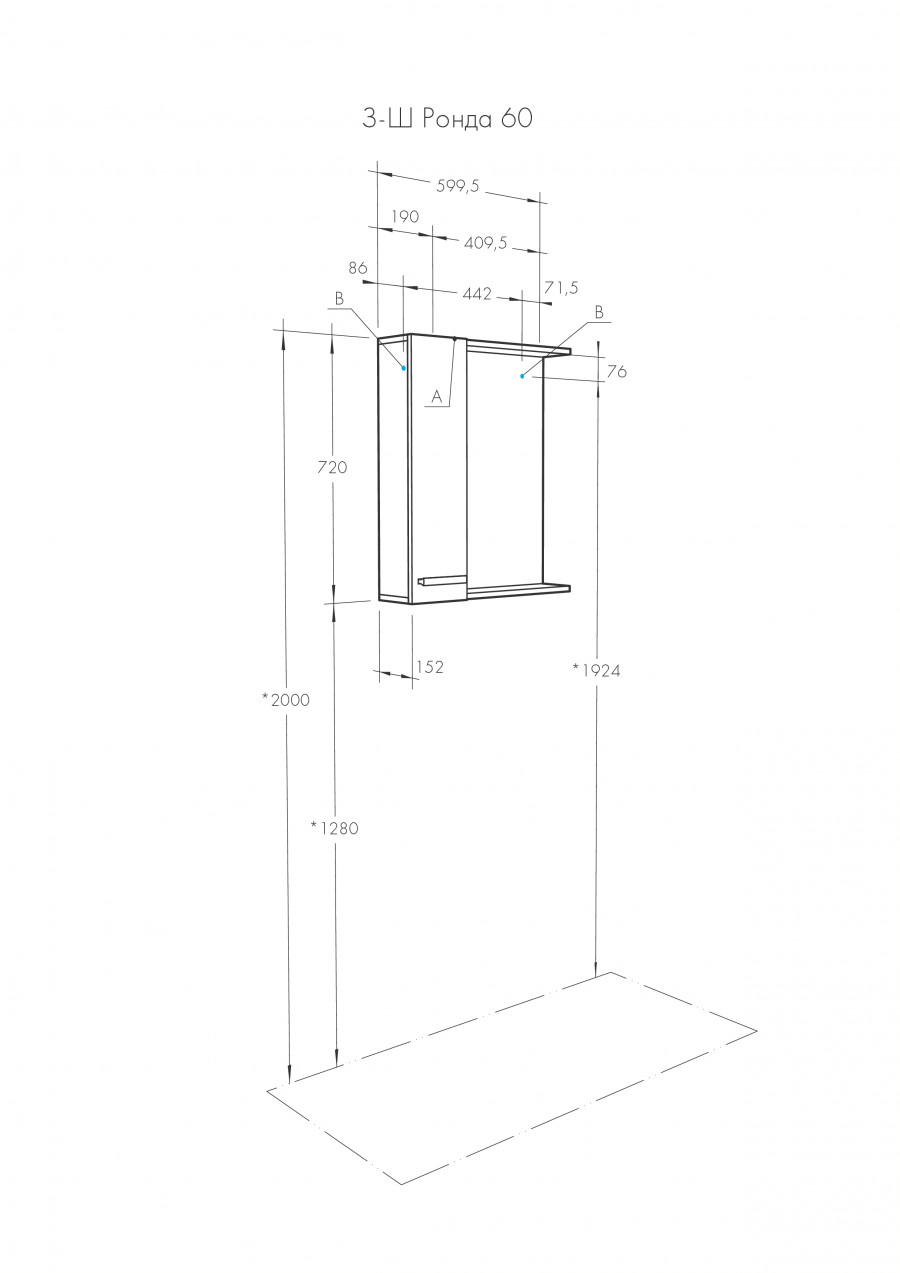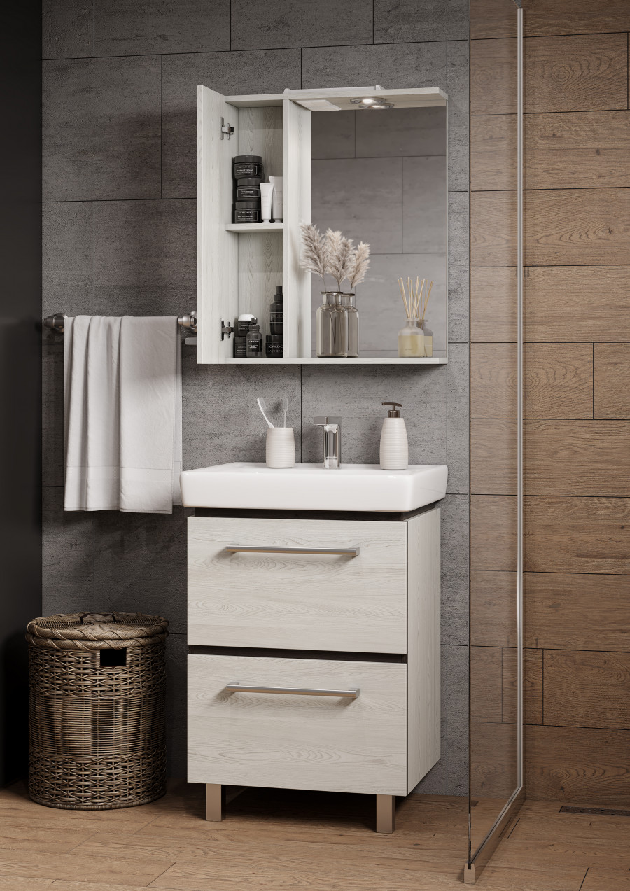 Шкаф- 1 шт., полка - 1, встроенный светильник -1, розетка с выключателем - 1, фасад створка - 1 шт, петли с интегрированной системой плавного закрывания - 2, ручка - 1