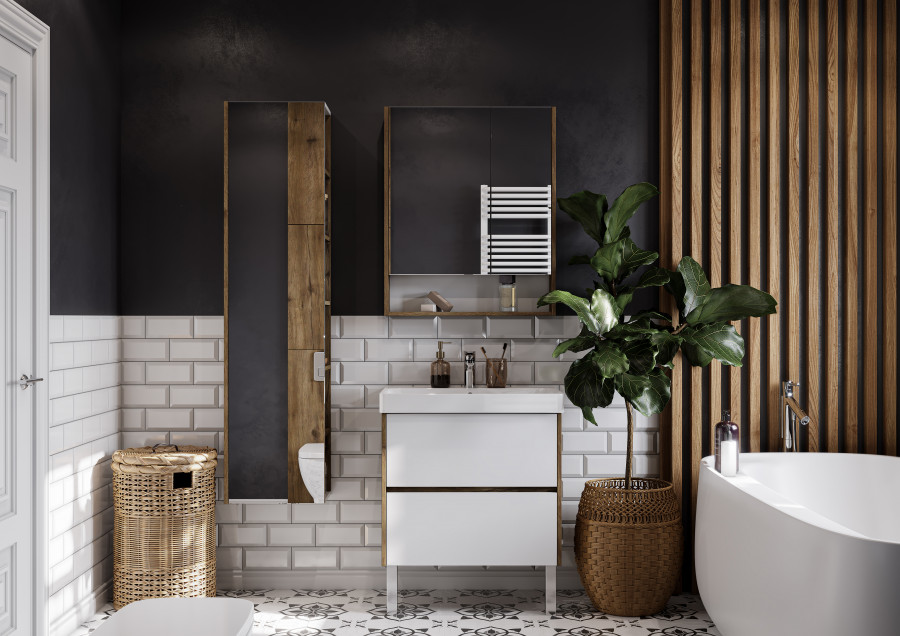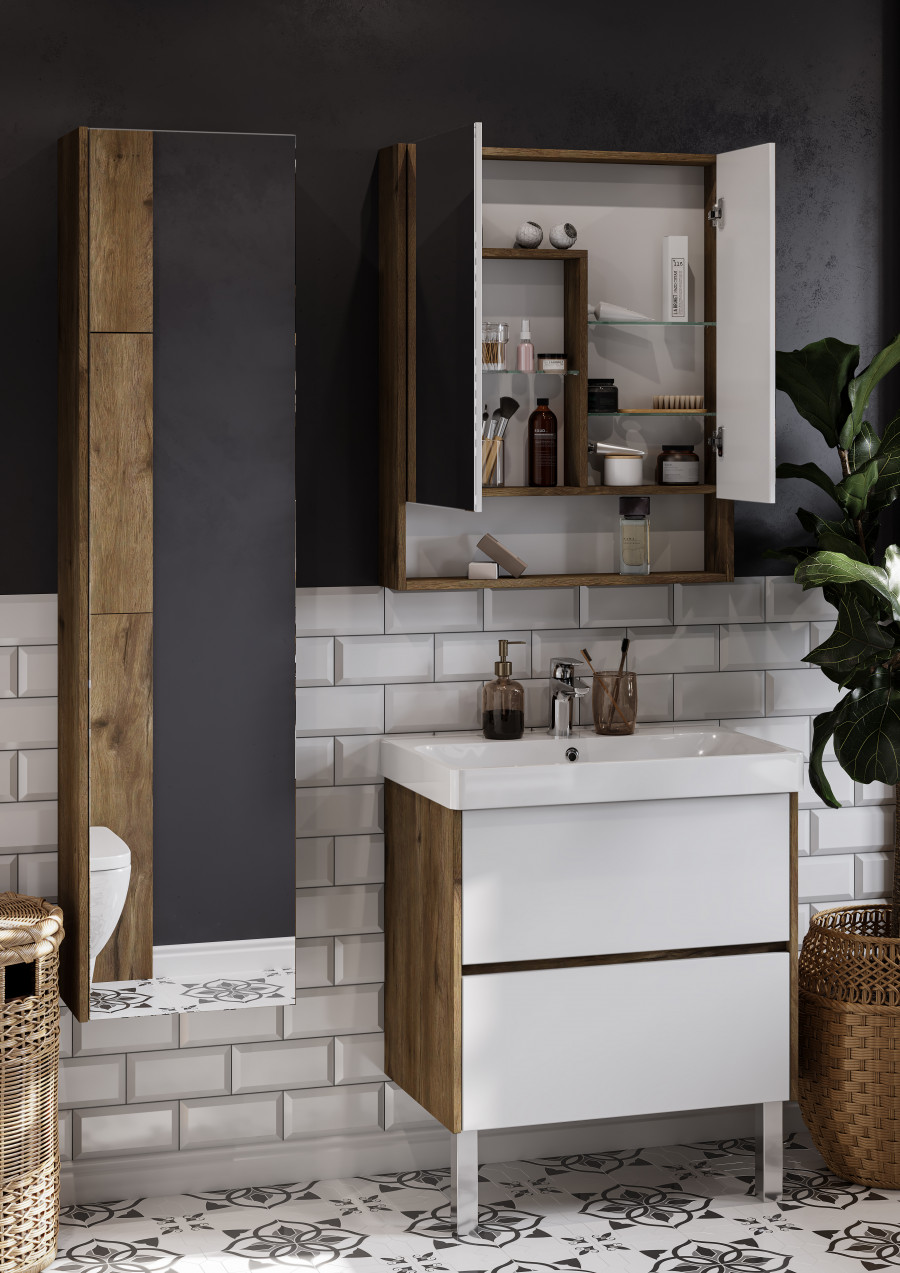 Зеркальный шкаф СКАНДИ 70, белый, дуб рустикальный