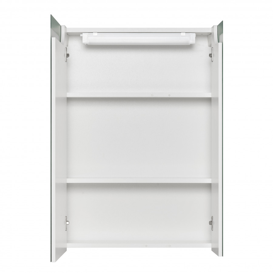 Шкаф- 1 шт., полка - 2, светильник - 1, фасад створка - 2 шт, петли с интегрированной системой плавного закрывания - 4