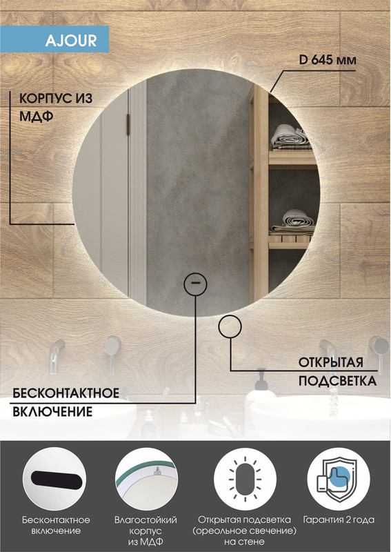 Зеркало Ajour Led D645 бесконтактный сенсор