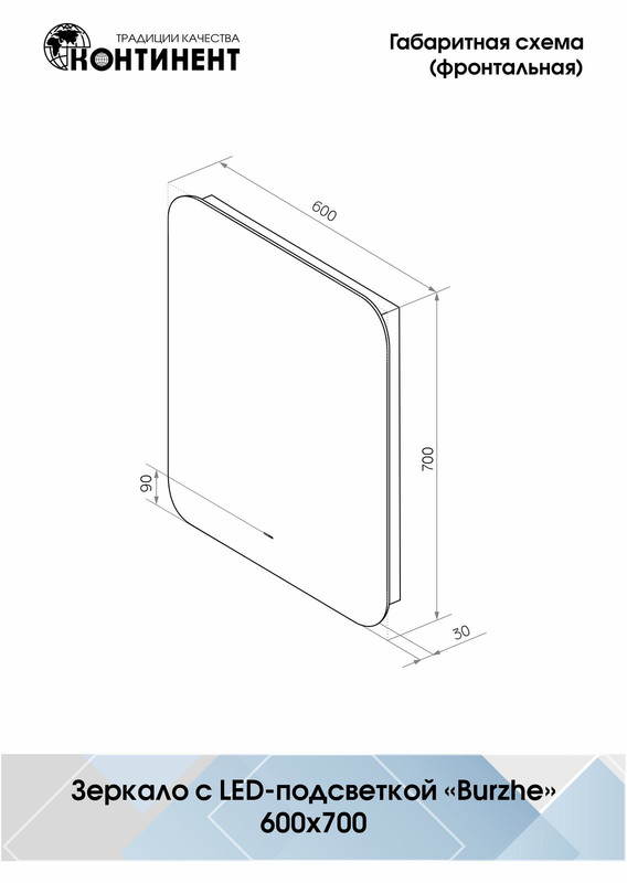 Зеркало Burzhe Led 600х700 бесконтактный сенсор