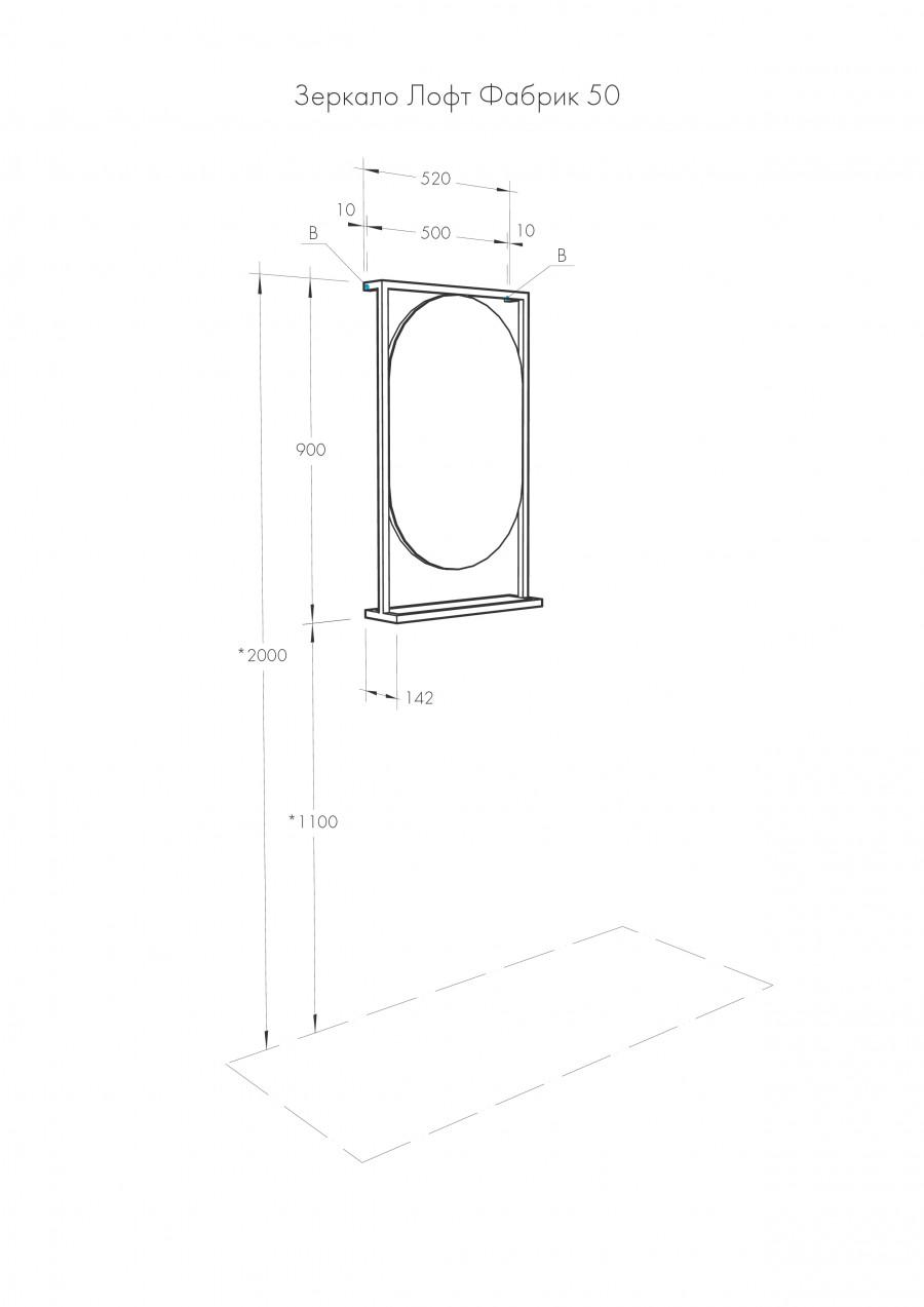 Зеркало 1шт., навес - 2