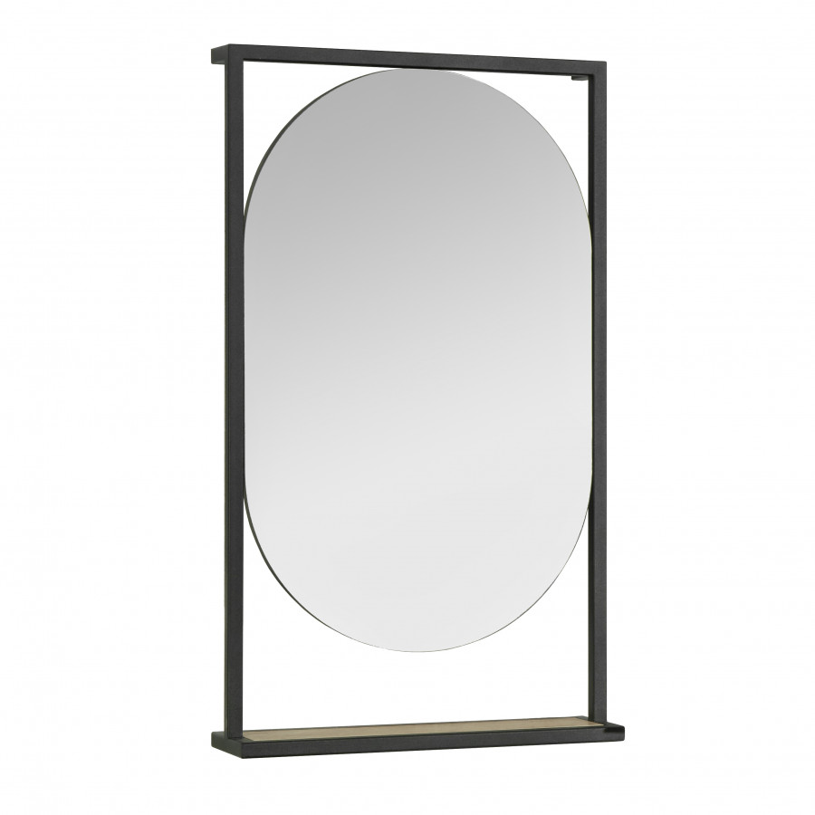 Зеркало Лофт Фабрик в размере 50 отличается необычным оригинальным дизайном и удобным функционалом. Черные металлические профили в форме прямоугольника обрамляют овальное зеркало, под которым находится полочка из влагостойкой ламинированной плиты в цвете Дуб Эндгрейн. Открытая полочка удобна для косметических и декоративных мелочей, которые всегда должны быть под рукой.Идет под: Тумба "Лофт Фабрик 65", дуб эндгрейн (Раковина "Фабиа 65", комплект "Джой 3"+столешн )