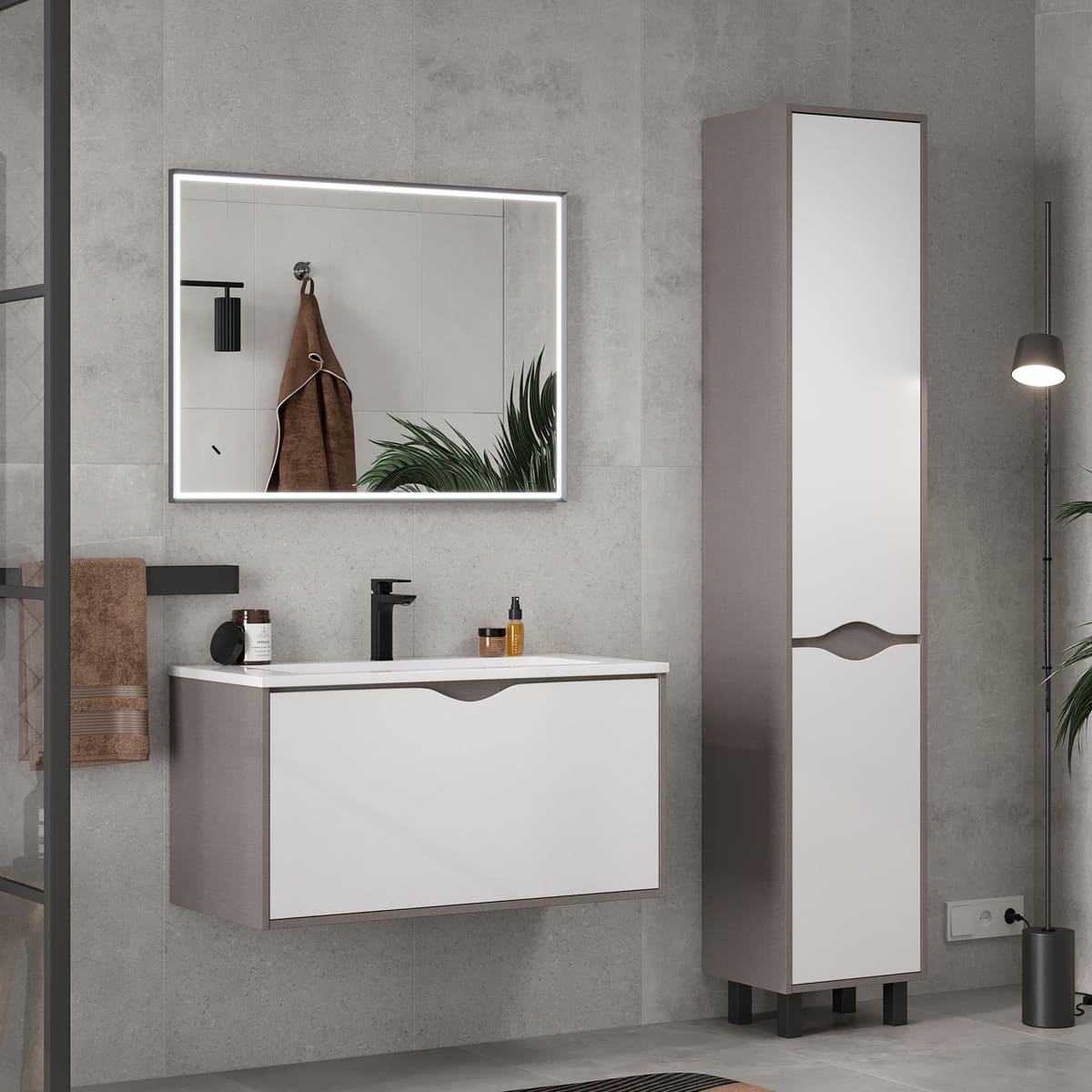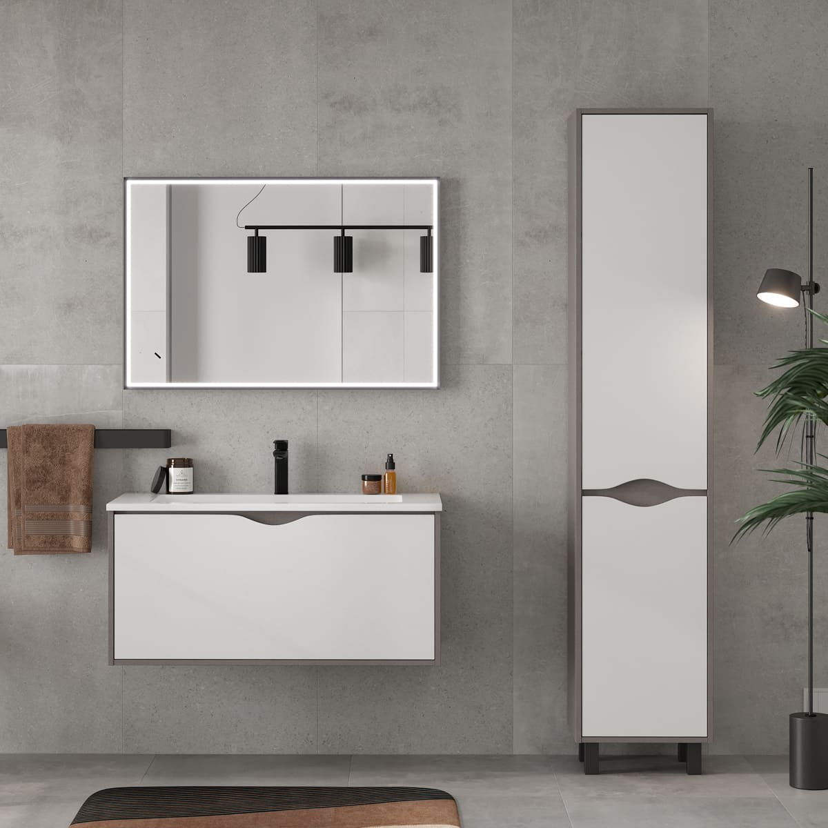 Зеркало с фронтальной LED-подсветкой в алюминиевой раме в цвете серый муар Управление подсветкой осуществляется при помощи бесконтактного сенсора.