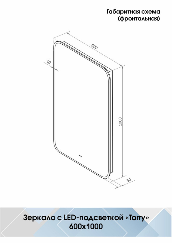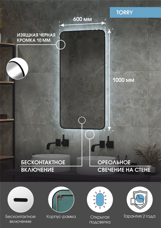 Зеркало Torry 600х1000 бесконтактный сенсор