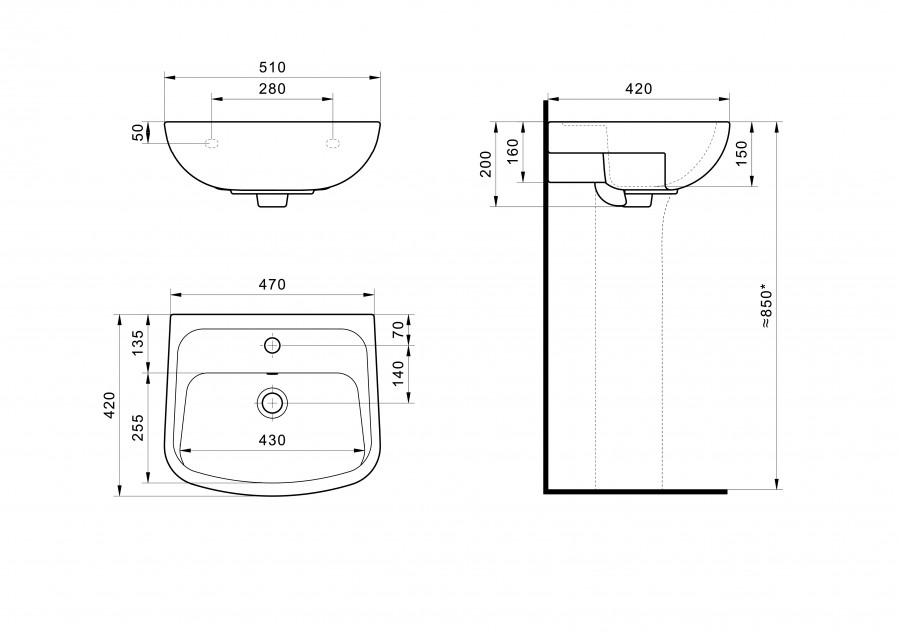 ЛОНГИ Умывальник 50см,белый,САНТЕК