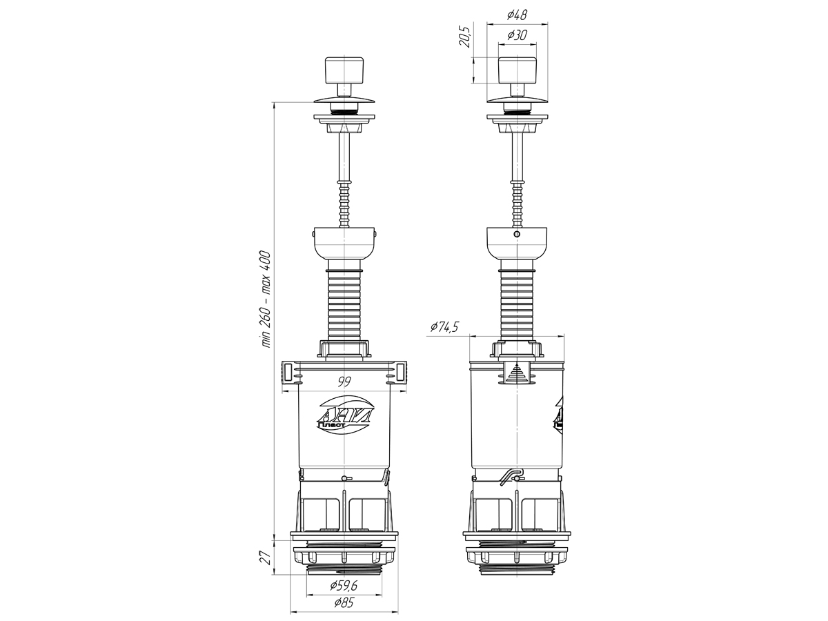 Арматура спускная ШТОК пластик белый ручка, ANI PLAST