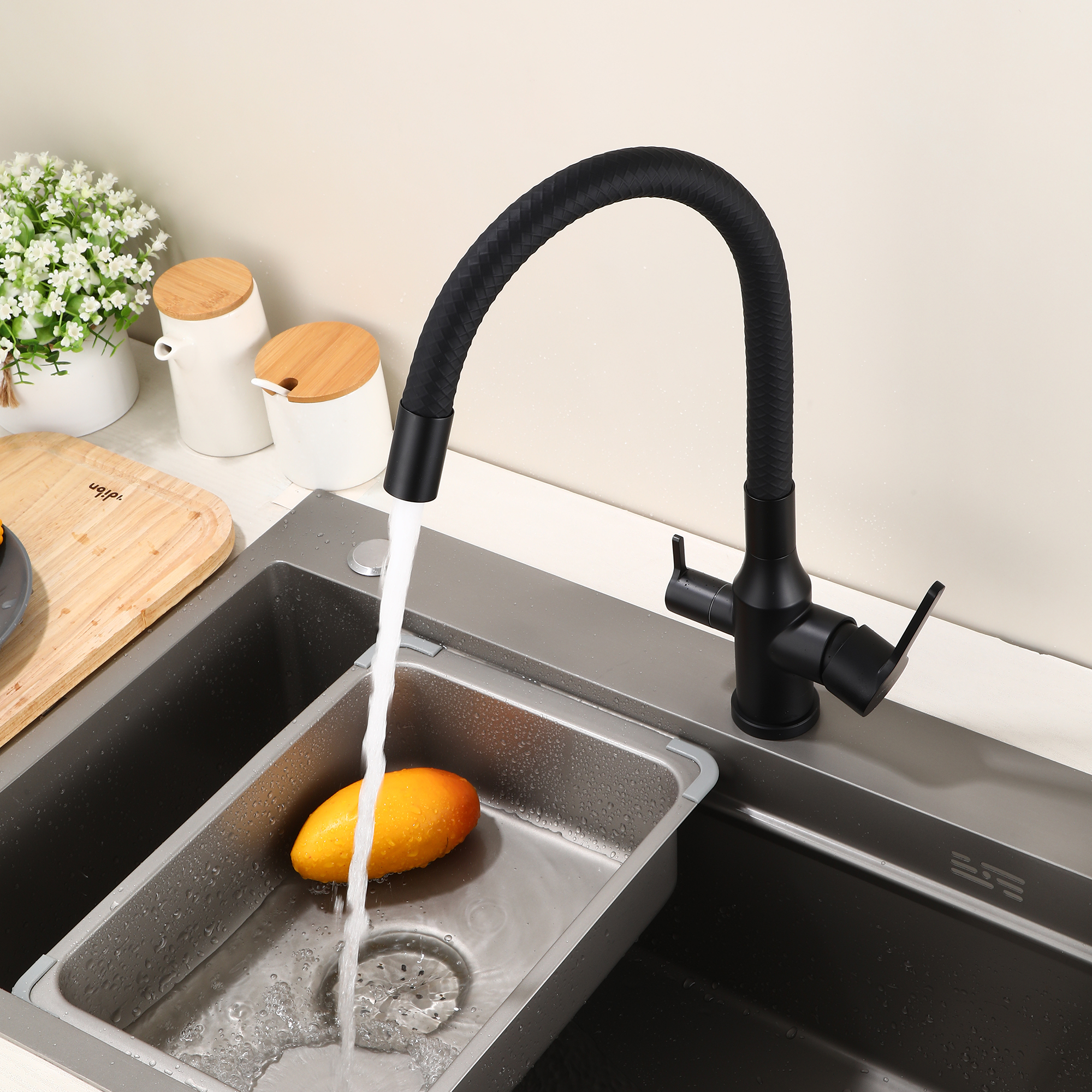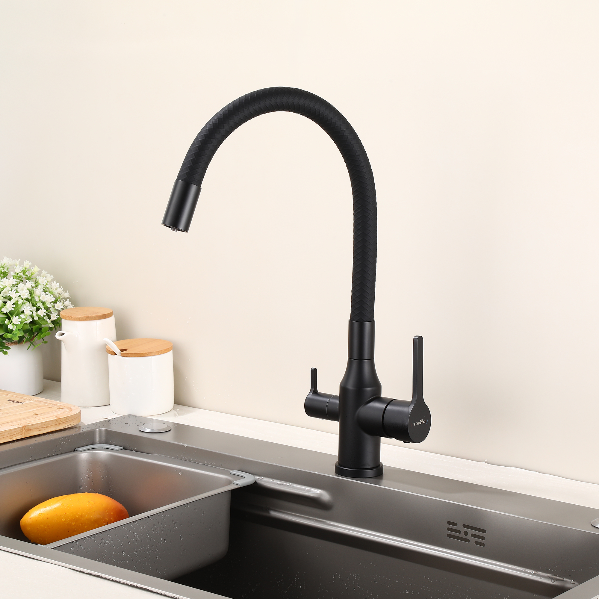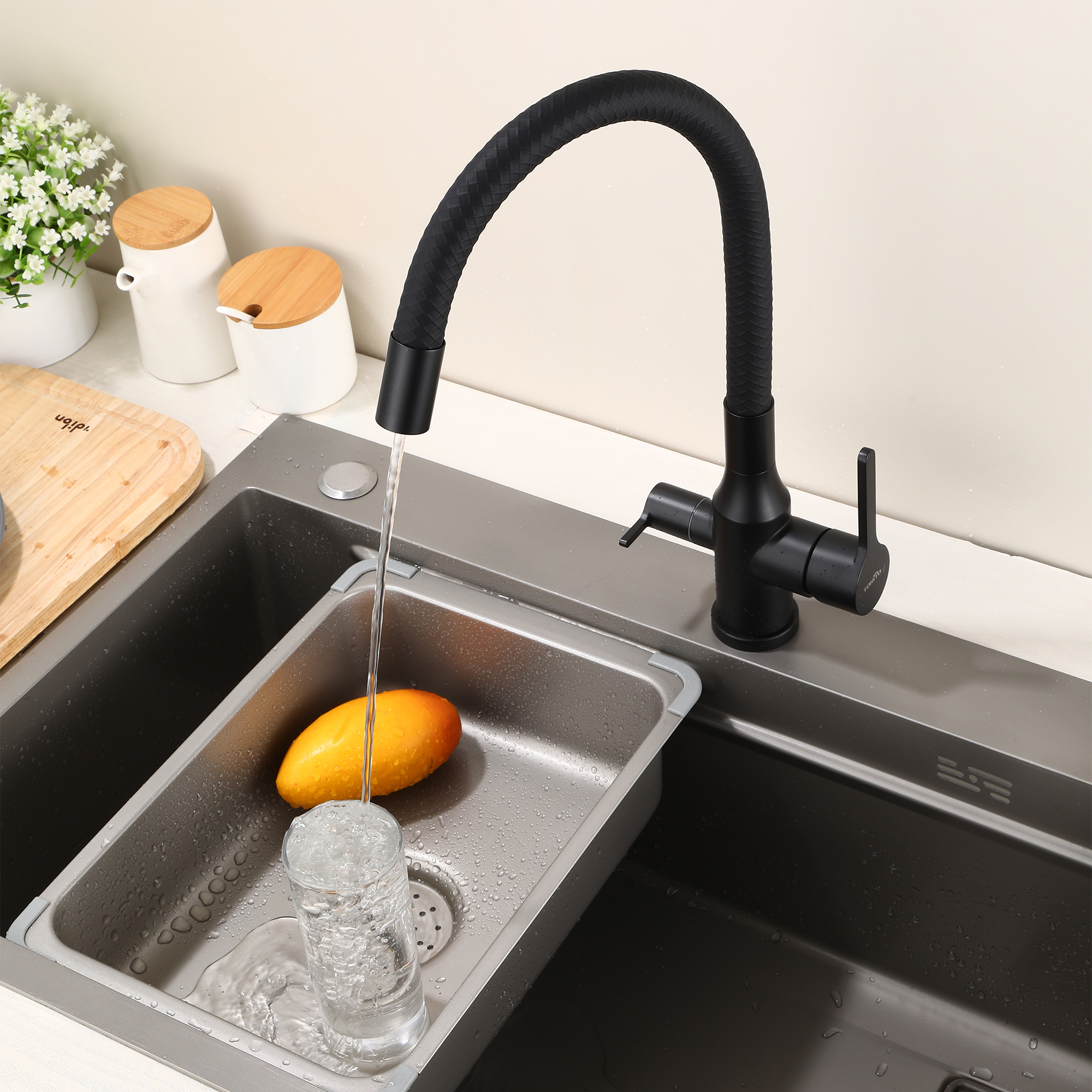 Наслаждайтесь чистейшей водой прямо из основного смесителя. Наша коллекция — это безупречный дизайн и умные технологии: встроенный подключение к фильтру и элегантный силиконовый излив, который обеспечивает мягкую шелковистую струю без разбрызгивания. Технологии для комфорта и здоровья.