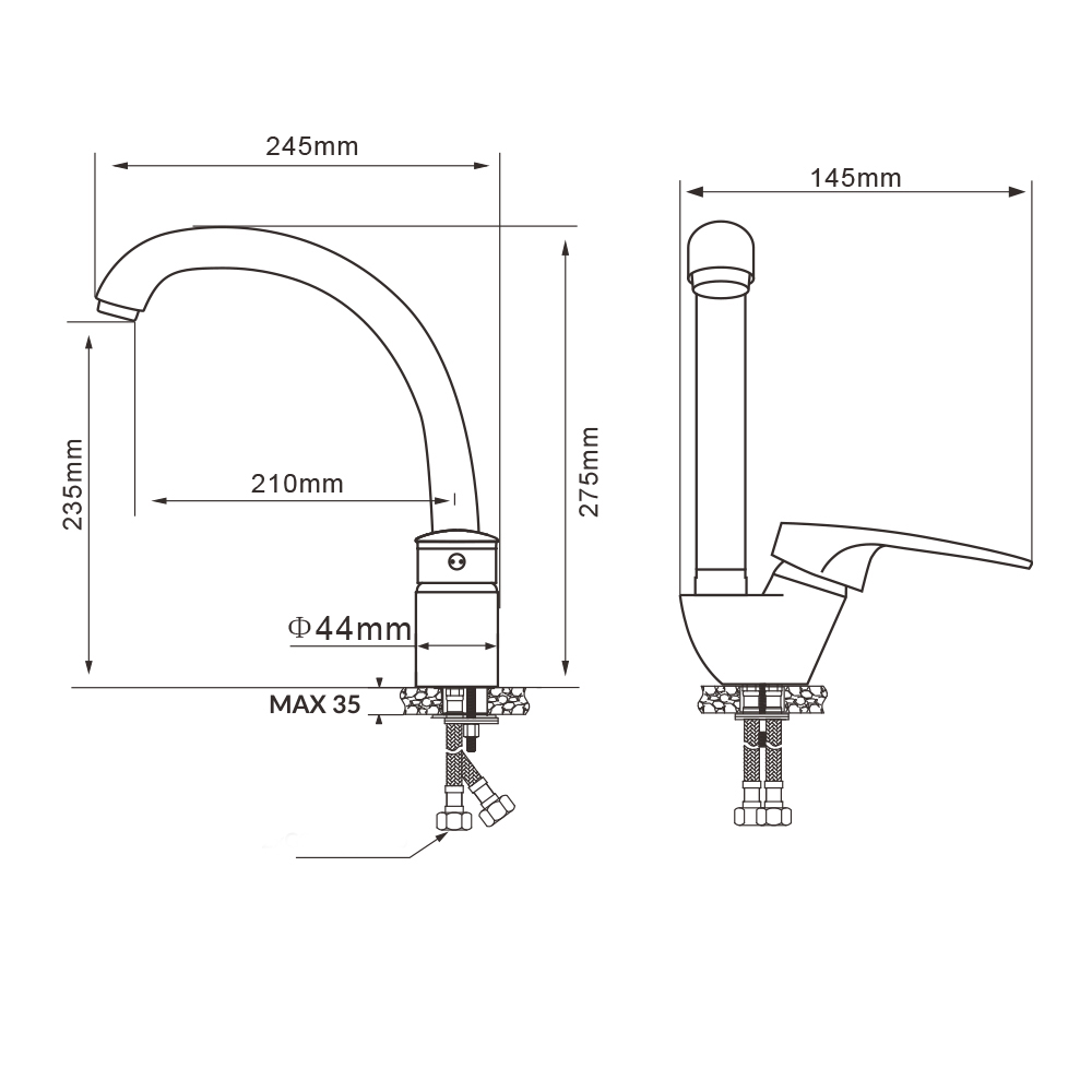 Хромированное покрытие Mirror shine обеспечивает прочное сцепление с материалом смесителя и гарантируя долгий срок службы и легкий уход.