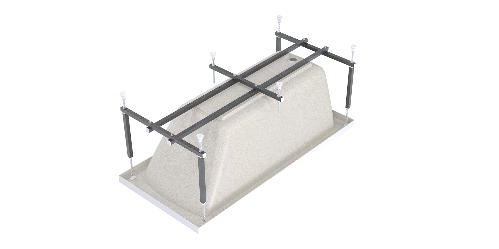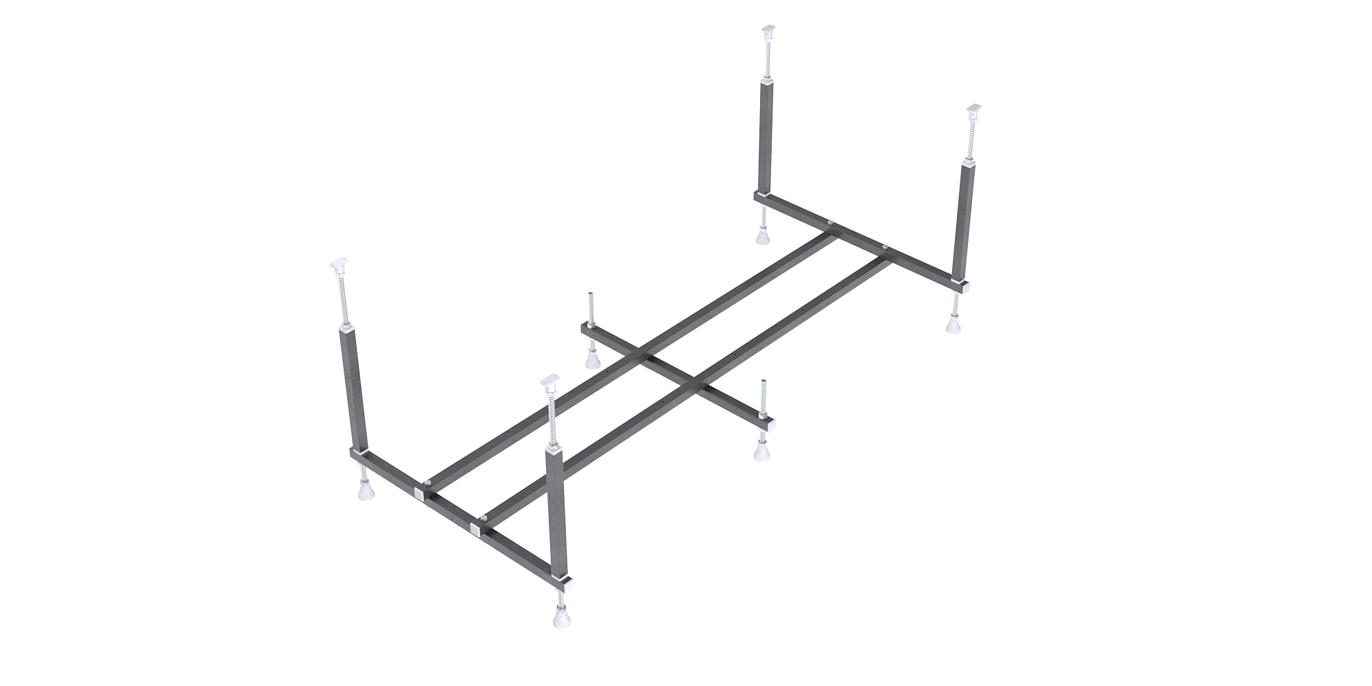 Каркас: сборно-разборная конструкция, стальной с порошковой (молотковой) покраской, с шестью регулируемыми ножками. Поставляется в комплекте с крепежом. Выдерживает нагрузку до 800 кг.