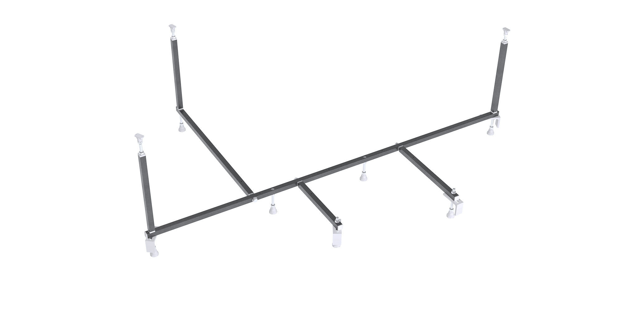 Каркас: сборно-разборная конструкция, стальной с порошковой (молотковой) покраской, с шестью регулируемыми ножками. Поставляется в комплекте с крепежом. Выдерживает нагрузку до 800 кг.