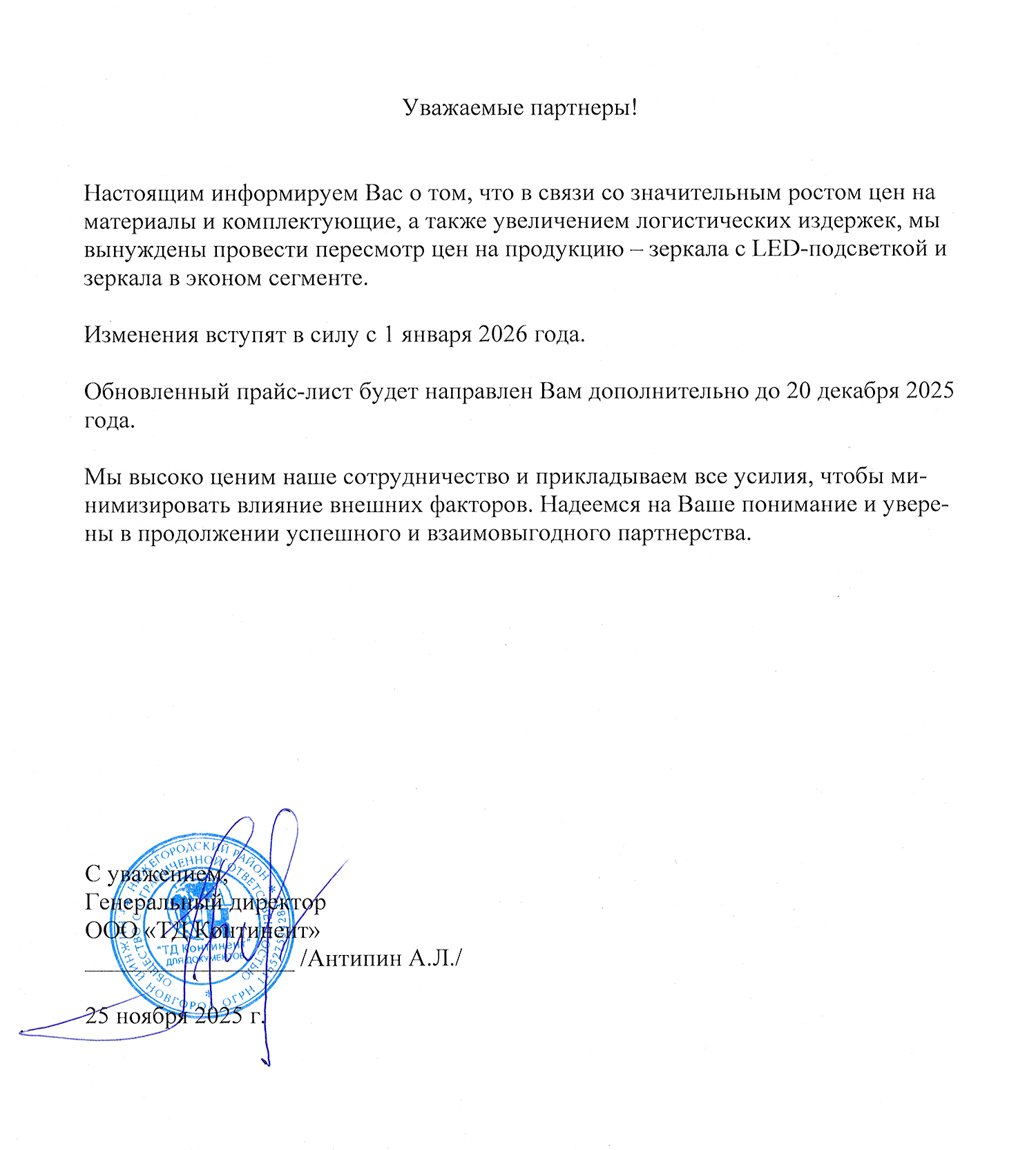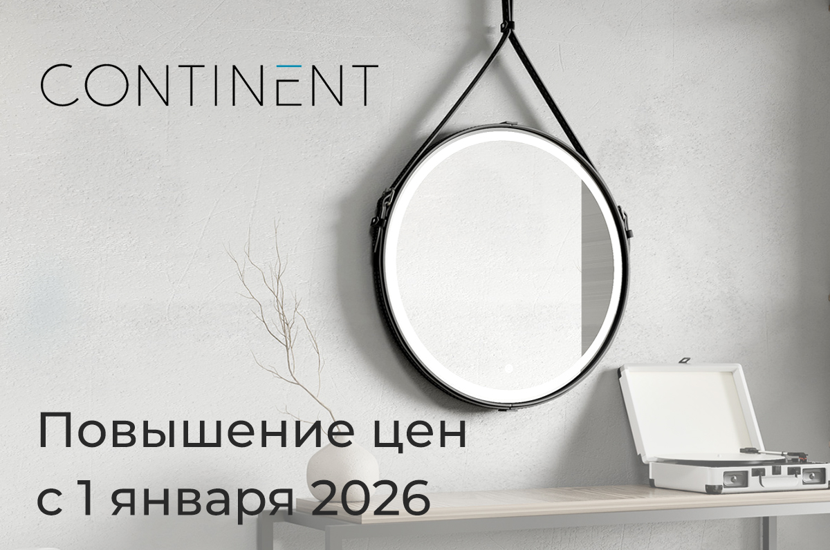 С 1 января 2026 года ожидается повышение цен на зеркала с LED-подсветкой и зеркала в эконом сегменте CONTINENT.