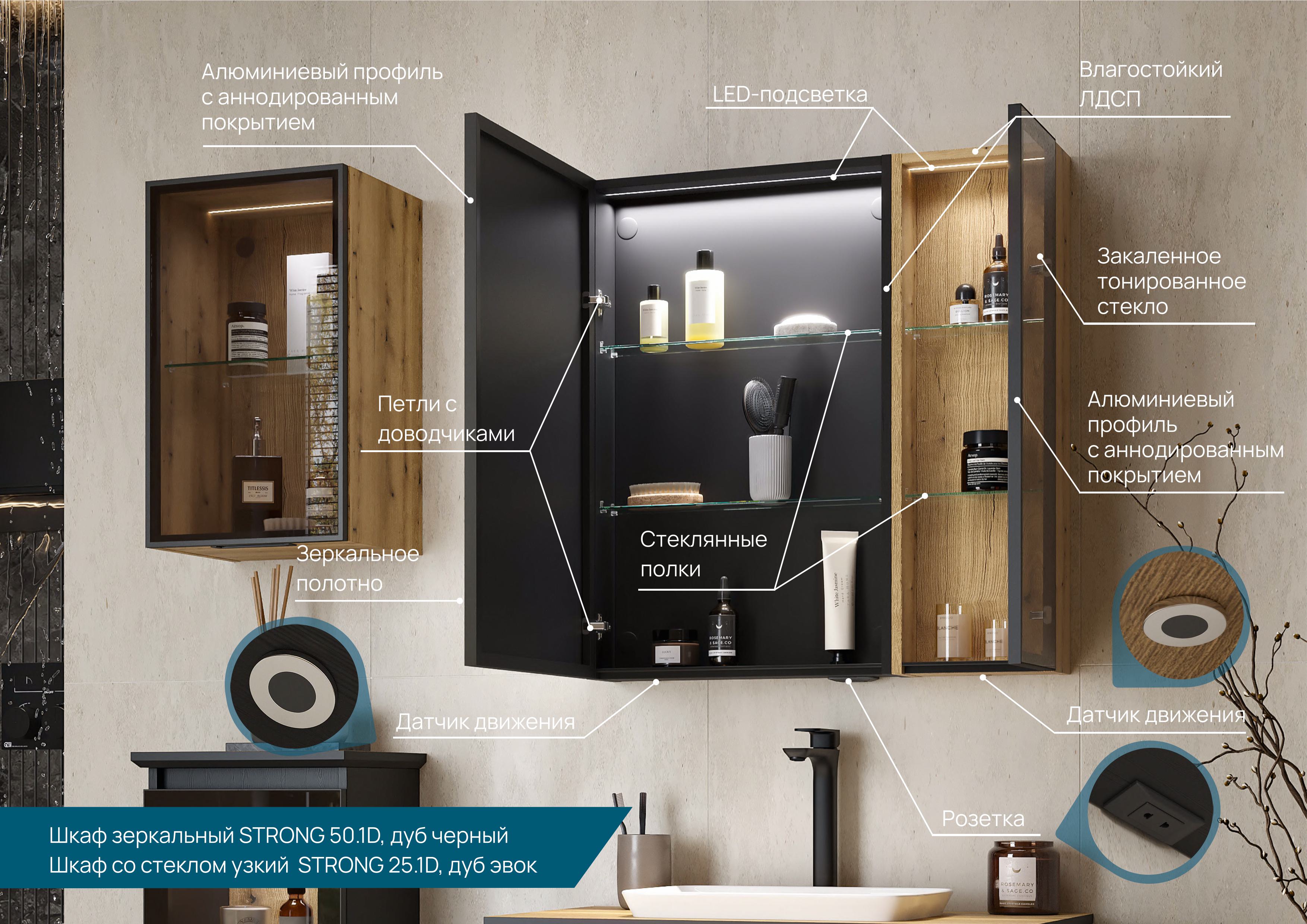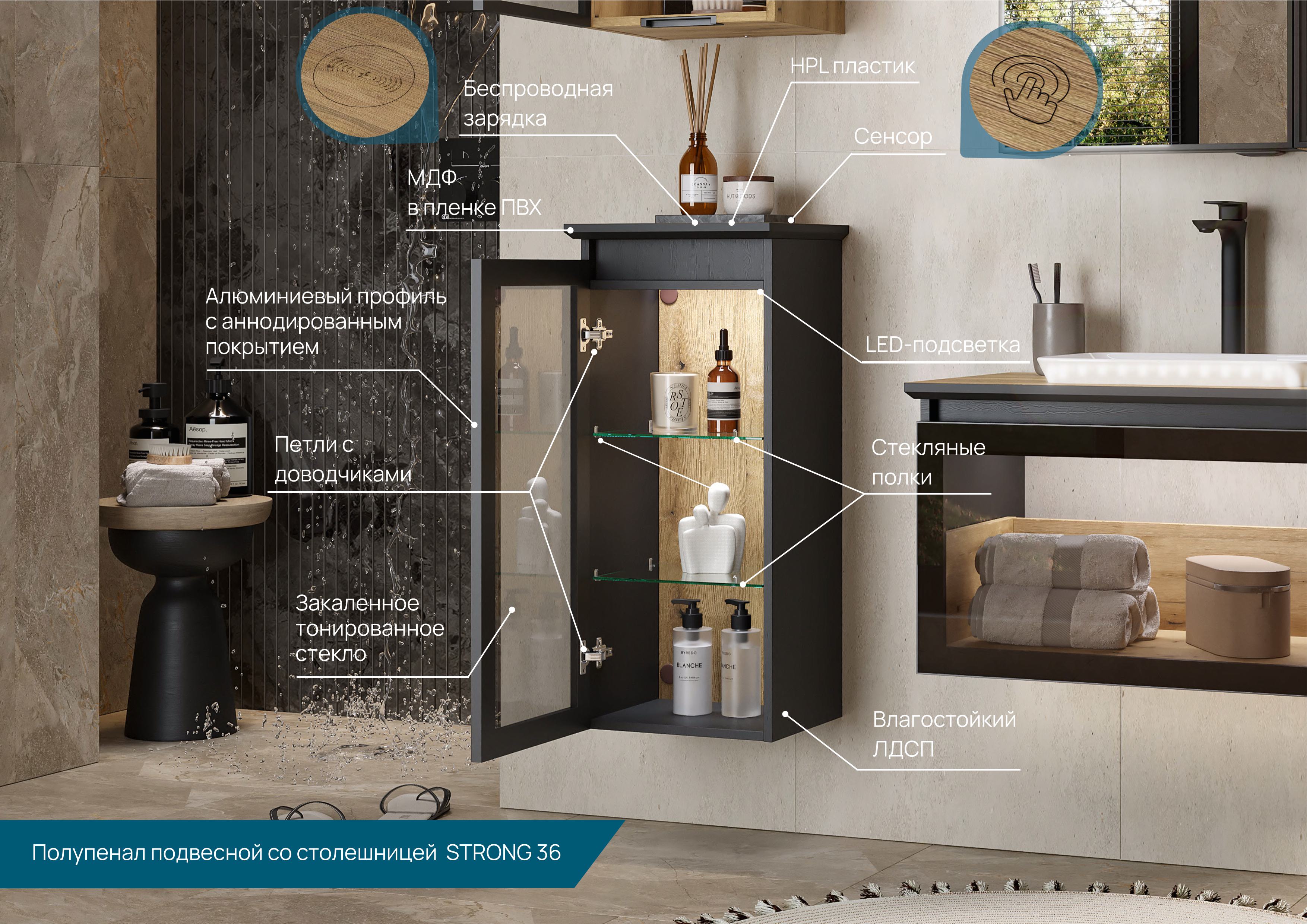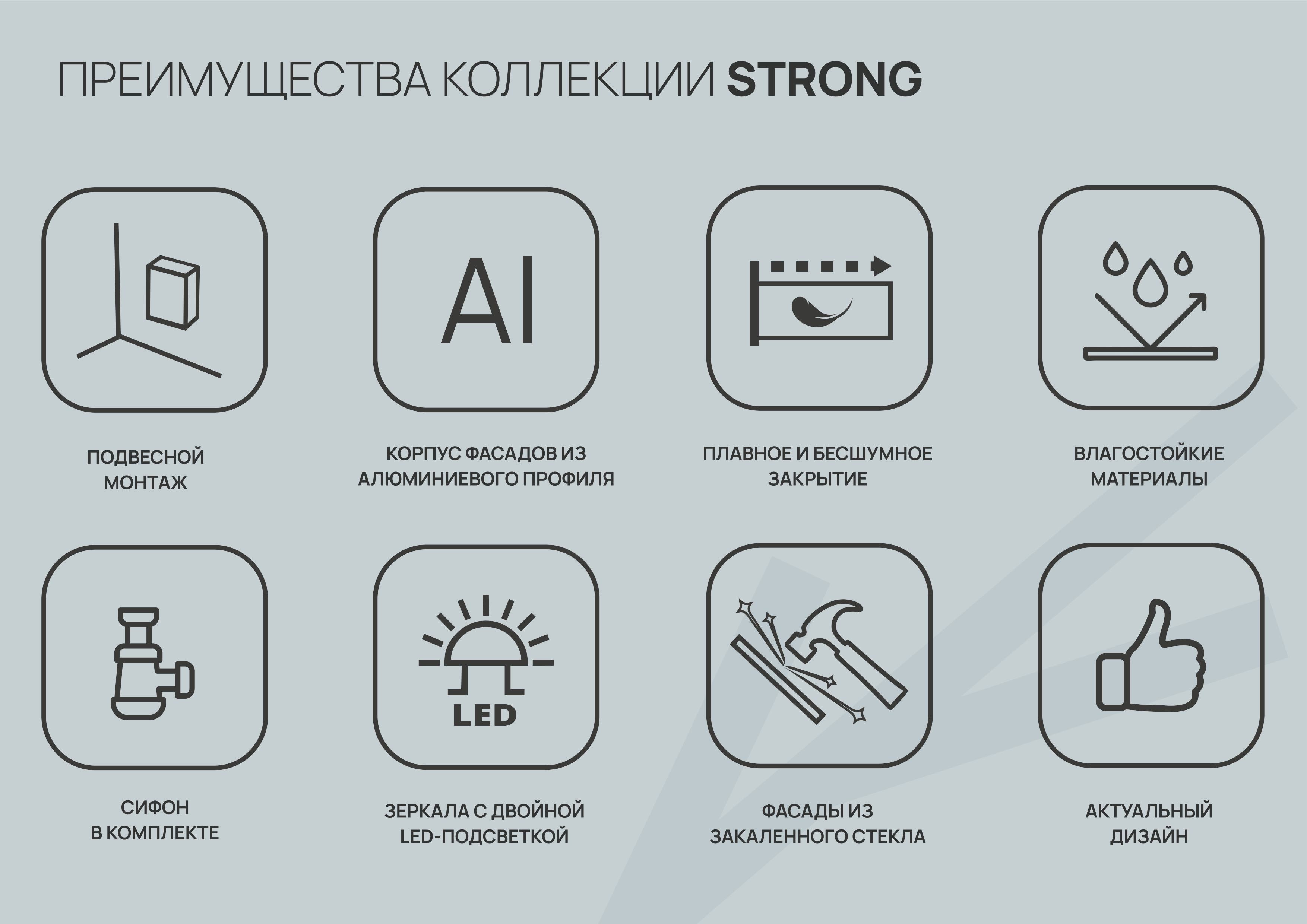 STRONG создаёт атмосферу современного санузла, где визуальная строгость сочетается с уютом. Эта коллекция подойдёт тем, кто ценит порядок, долговечность, минимализм и выразительные материалы. Здесь нет ничего лишнего - только чистая функциональность и уверенная эстетика, которая будет актуальна долгие годы.