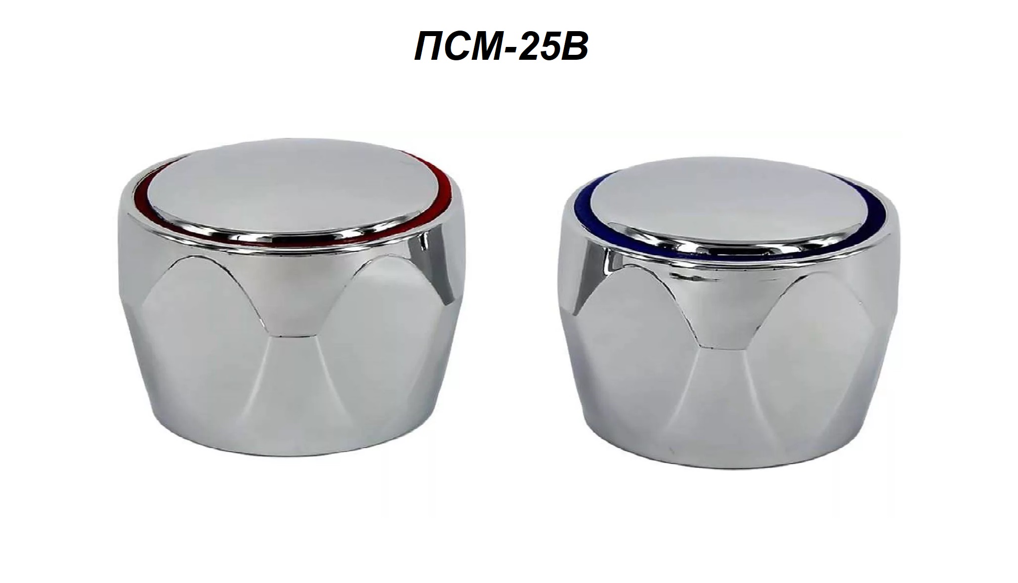 Комплект маховиков ПСМ-25B-24 для двухрычажных смесителей. Маховики изготовлены из металла, хромированные, расчитаны для кран-букс с цилиндрическим штоком на 24 шлица.
