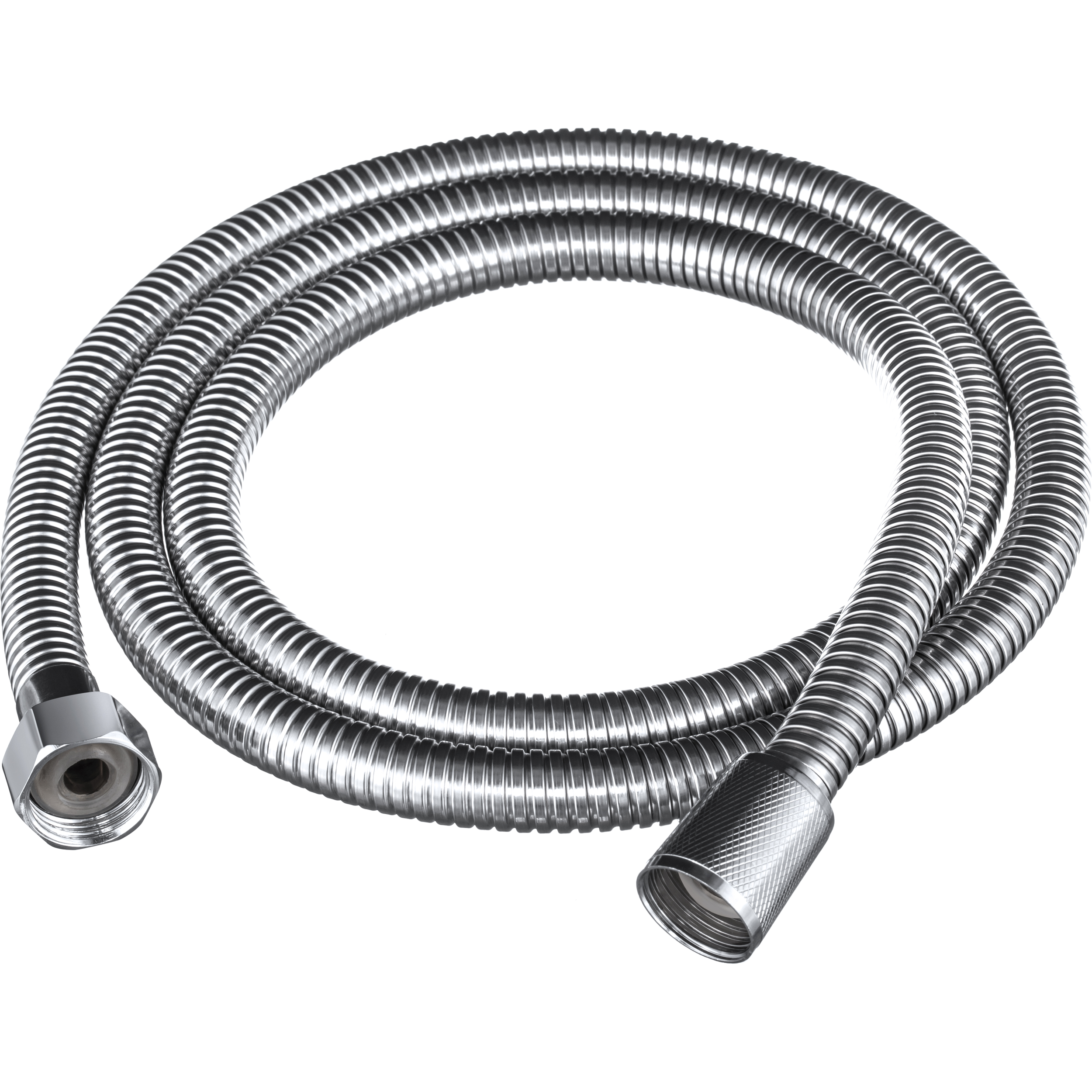 Основа шланга выполнена из EPDM резины, а сверху покрыта стальной обмоткой из нержавеющей стали тип - двойной замок. Обмотка защищает внутреннюю часть от агрессивного действия высоких температур, а также от механических повреждений. На краях расположены гайки для подсоединения к смесителю и лейке диаметром 1/2", длина 150 см.