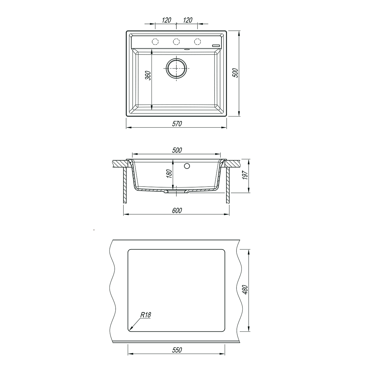 Кухонная мойка Lemark HANKA 570 врезная прямоугольная из кварцгранита, Серый шёлк