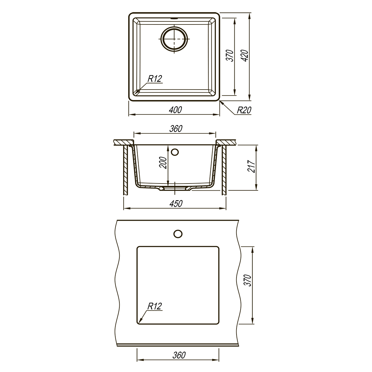 Кухонная мойка Lemark SINARA 400-U подстольного монтажа из кварцгранита, Шампань