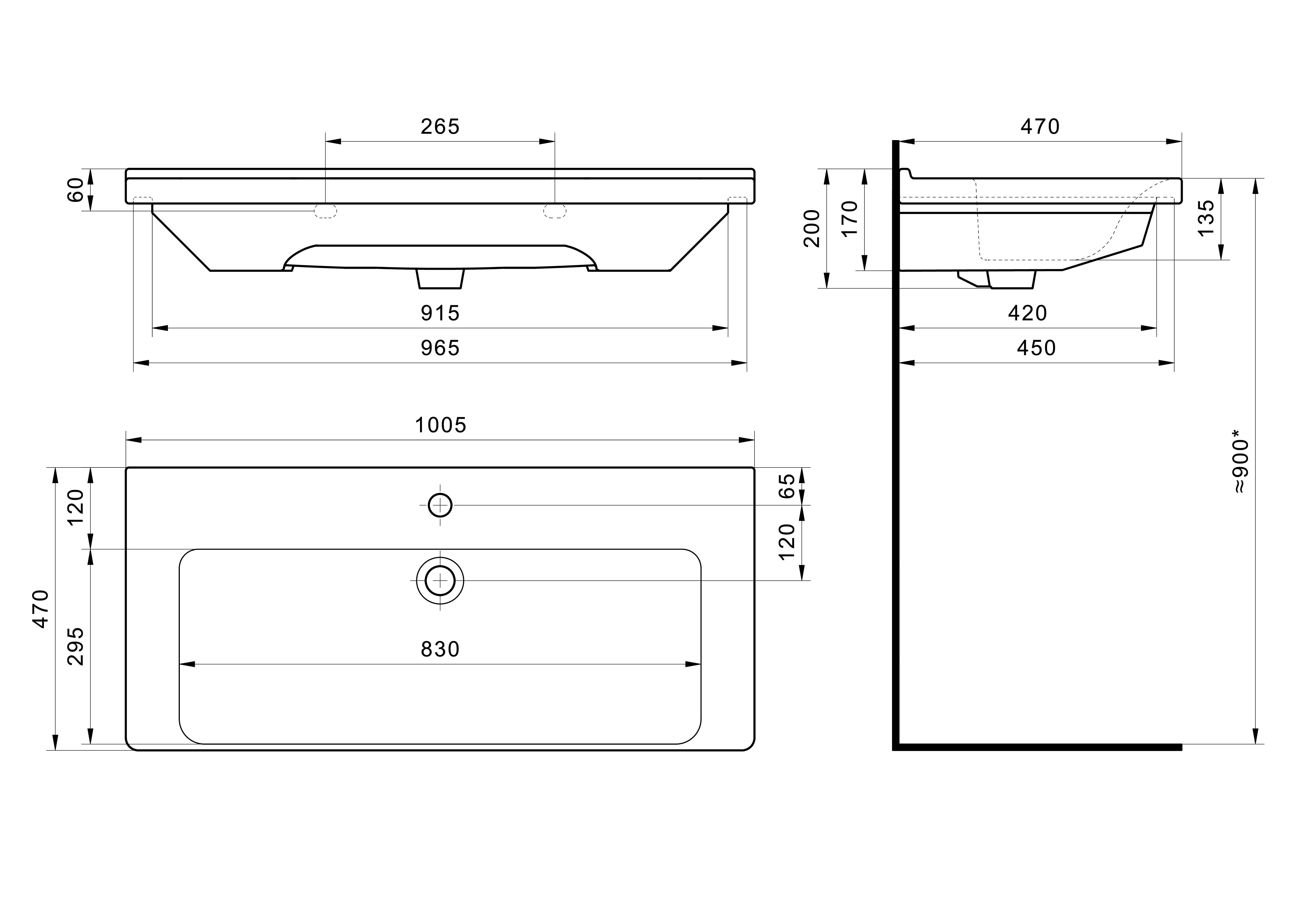 МИРАНДА Умывальник мебельный 100 см., хр.кольцо, САНТЕК
