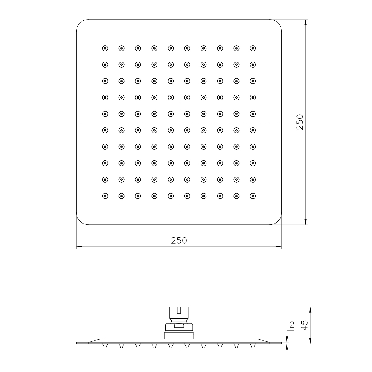 Лейка душевая верхняя, квадратная, 250х250мм, черный, LM, LM9487BL